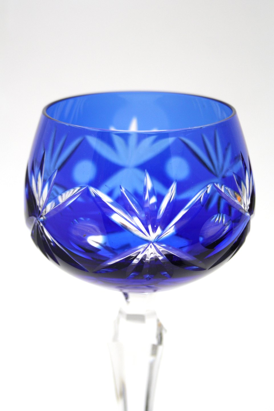 Bøhmisk krystal, vinglas med slebet kumme og stilk. Højde 19 cm. Øverste diameter 7 cm. Pris: 225 kr. stk.