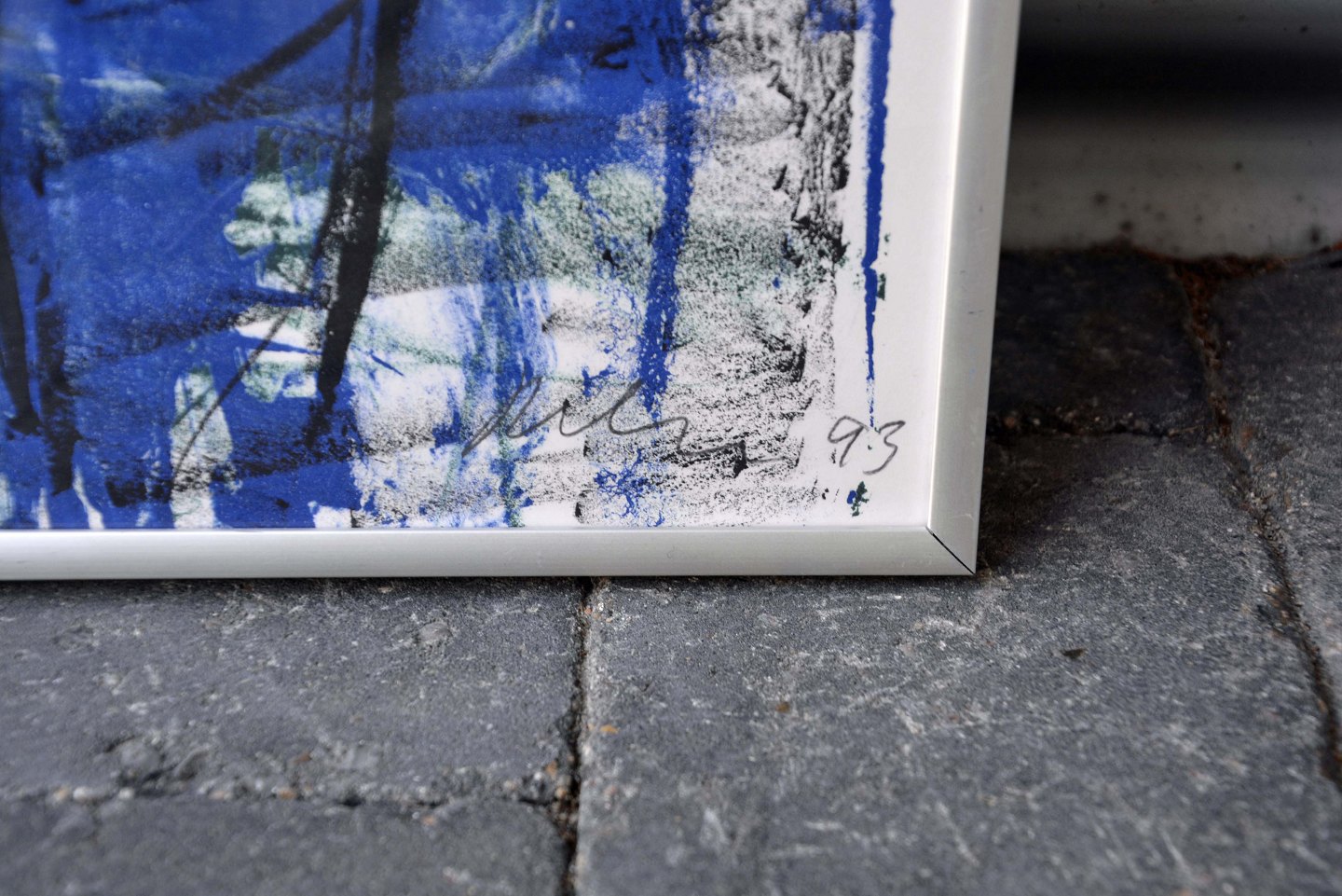 Litografi med skriften "Pathos" i blå og sorte nuancer af Erik A. Frandsen