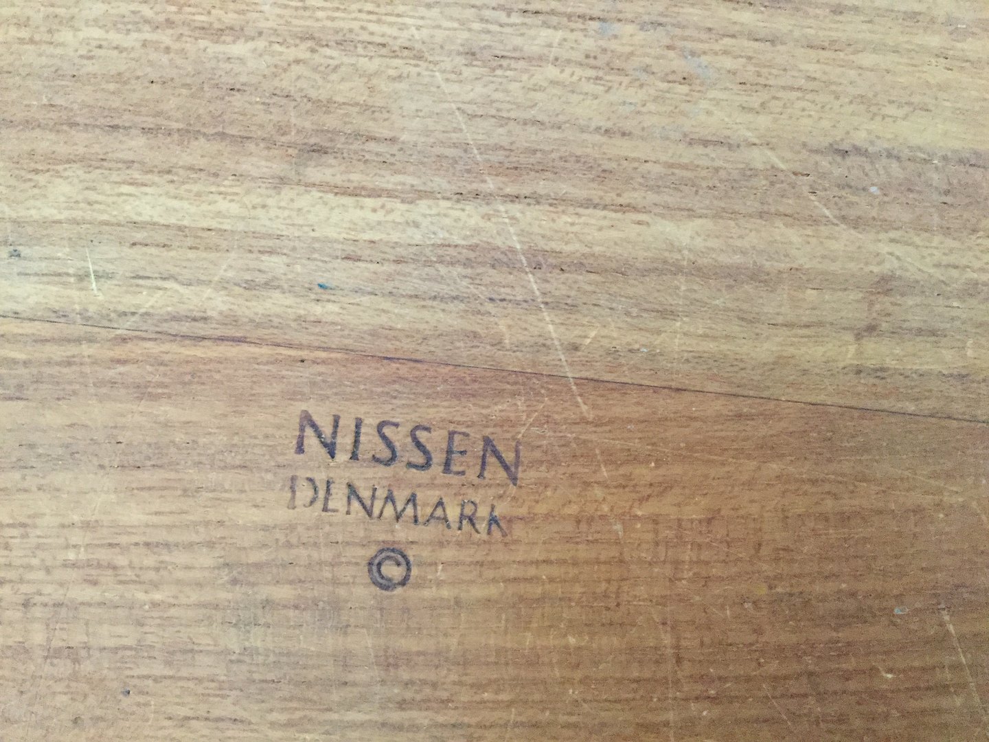 Large stave-lined salad bowl in teak from Nissen in Langå. The brand: Nissen Denmark. Diameter 27 cm height 12.5 cm. A few small chips to edge otherwise good condition.