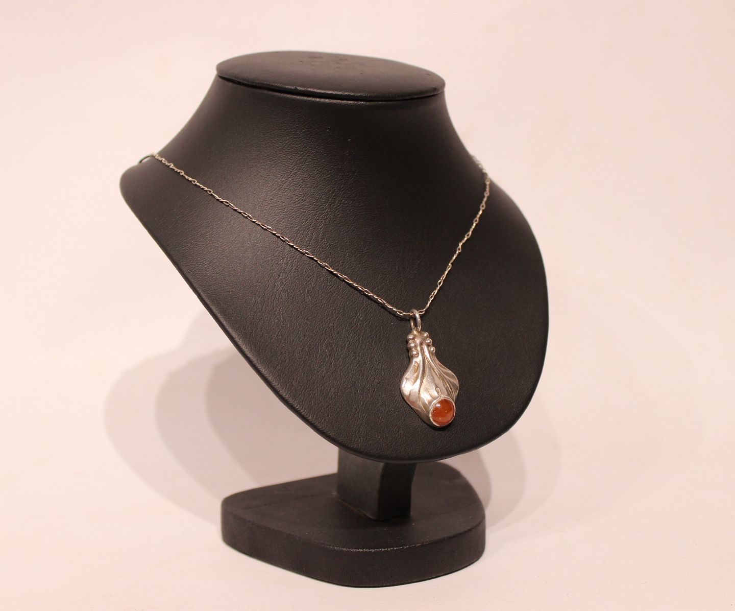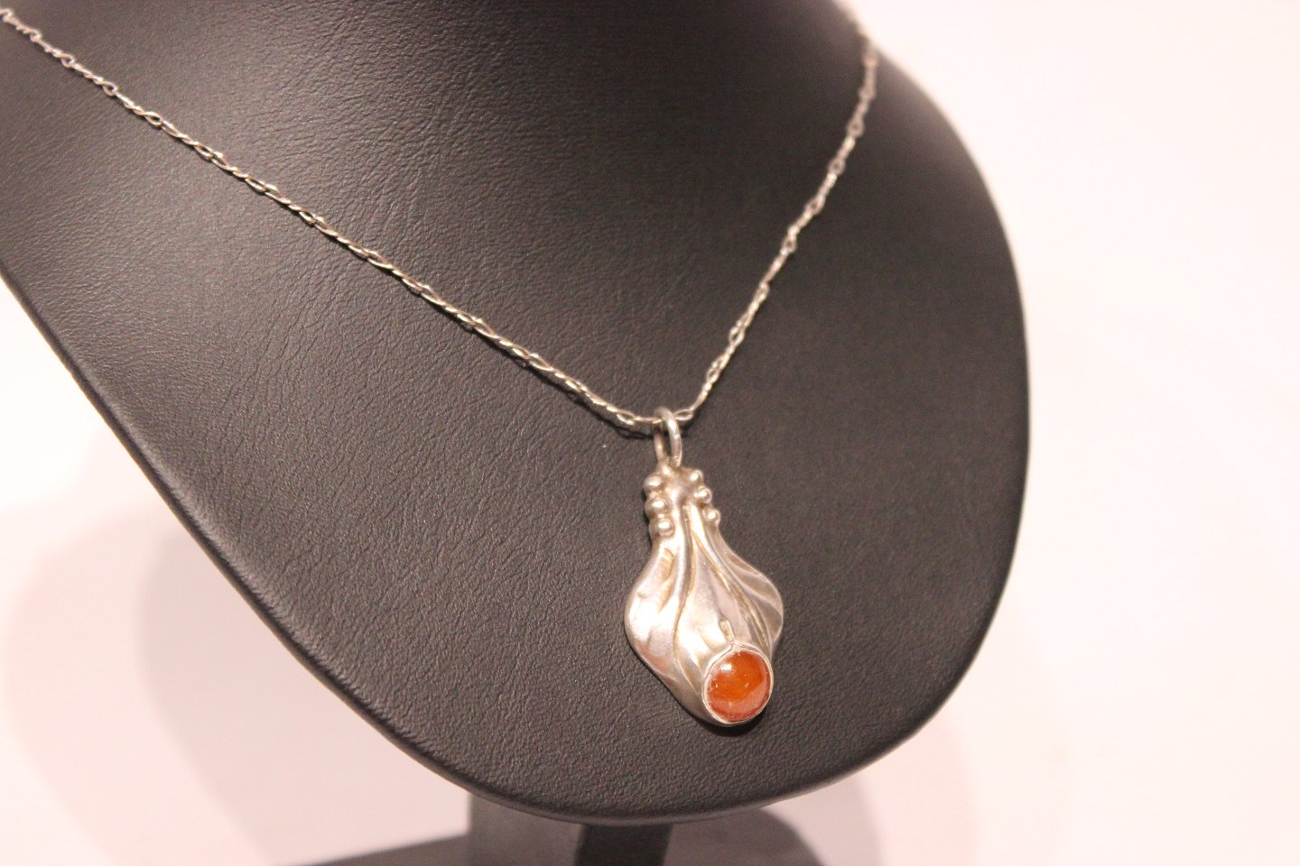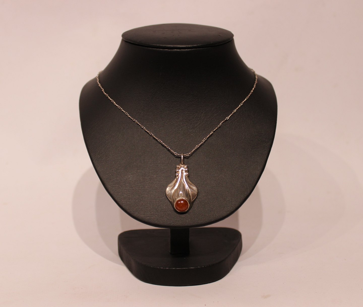 Tynd sølvkæde med vedhæng af sølv med karneol.
