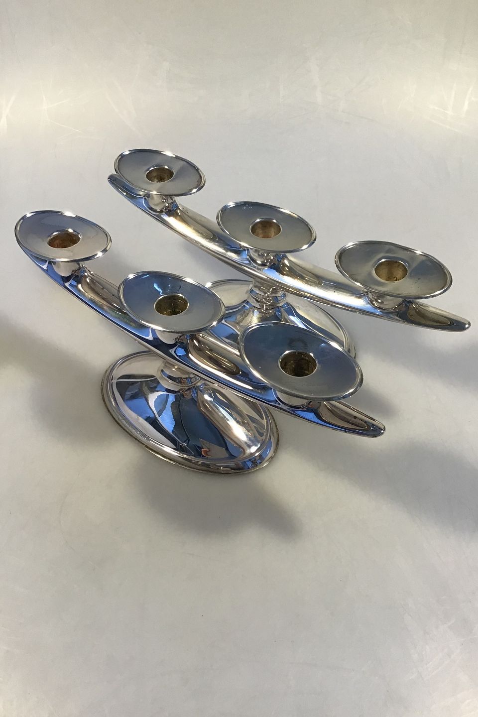 Wilkens(Tyskland) Sølv Lysestager No 8049. Måler L 27 cm H 10 cm Samlet vægt incl udfyldt base 1160 gr. (To tyller med trykmærker)