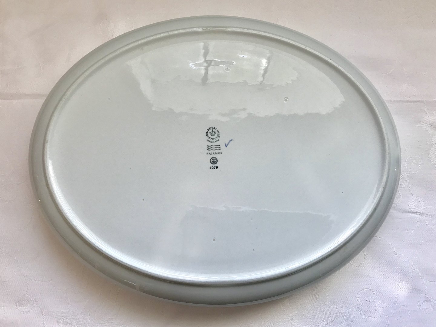 | Royal Copenhagen, Aluminia, Blå kant, Ovalt fad #3079, 33,5cm bred, 26,5cm dyb, 6cm høj, Design Grethe Meyer *Med brugsspor*