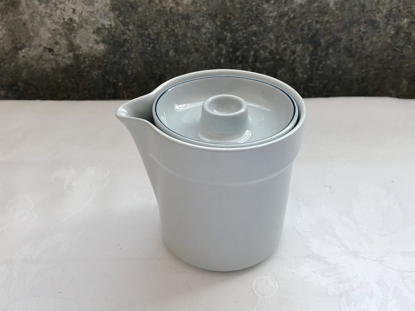 | Royal Copenhagen, Aluminia, Blå kant, Flødekande #3062, 8cm høj, 7,3cm i diameter, 1.Sortering, Design Grethe Meyer *Pæn stand*