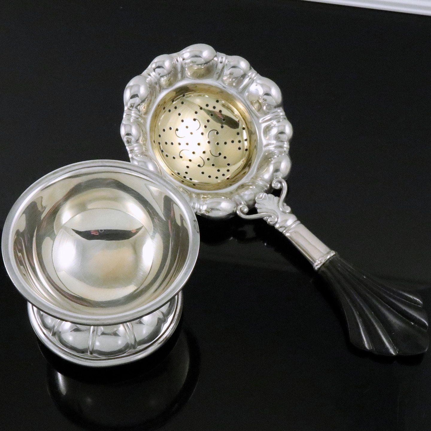 Carl M. Cohr. Silver Tea Strainer on Stand, partly gilded.