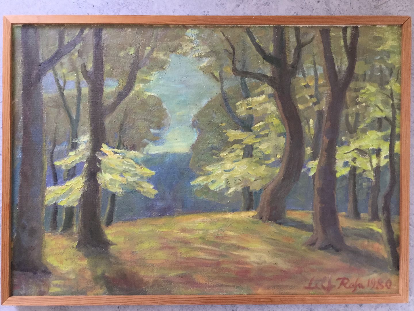 Maleri af Leif Rafn - Vejen til Mosskovgaard - Skovridergård 1980