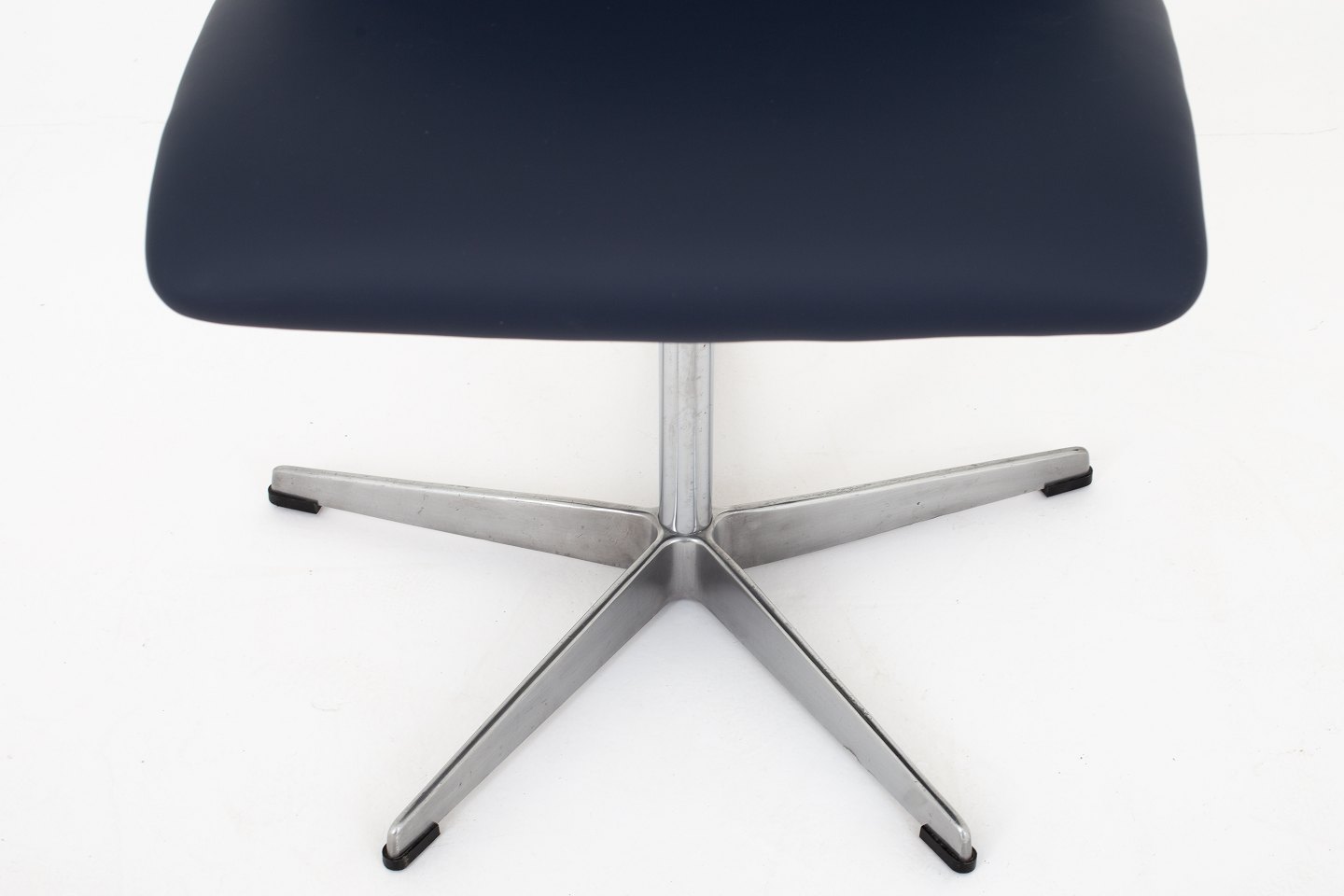 AJ 3171 Oxford-stol nybetrukket i mørkeblåt læder (Savanne Royal Blue) på stel af aluminium. KLASSIK tilbyder polstring af stolen med stof eller læder efter eget ønske. Kontakt os venligst for mere information.