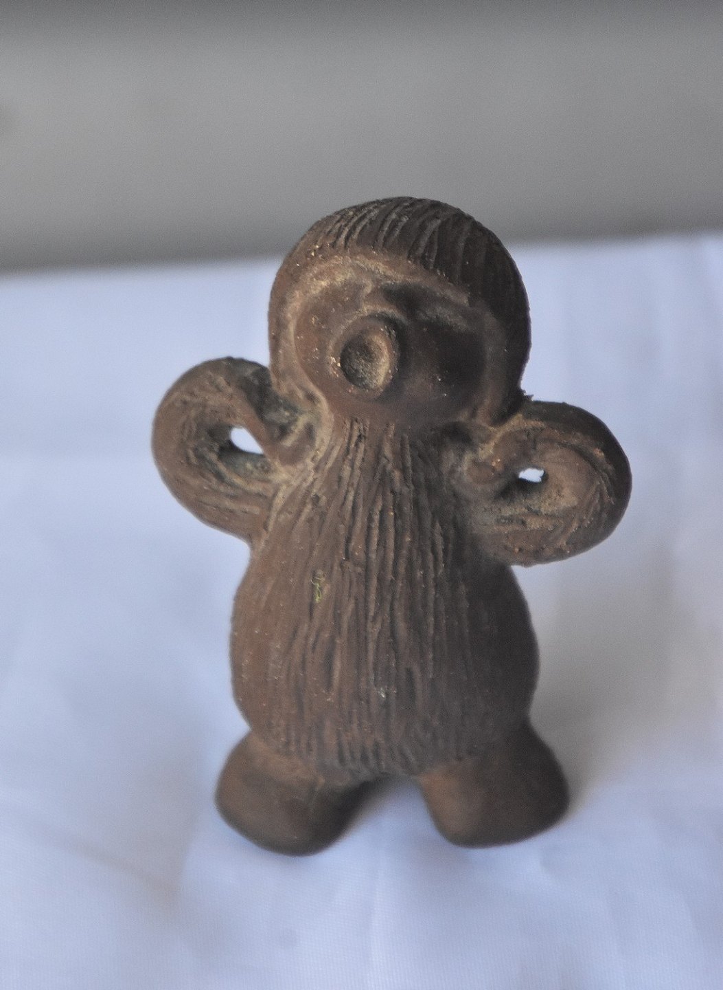 Troldefigur i keramik med motiv af gabende troldepige