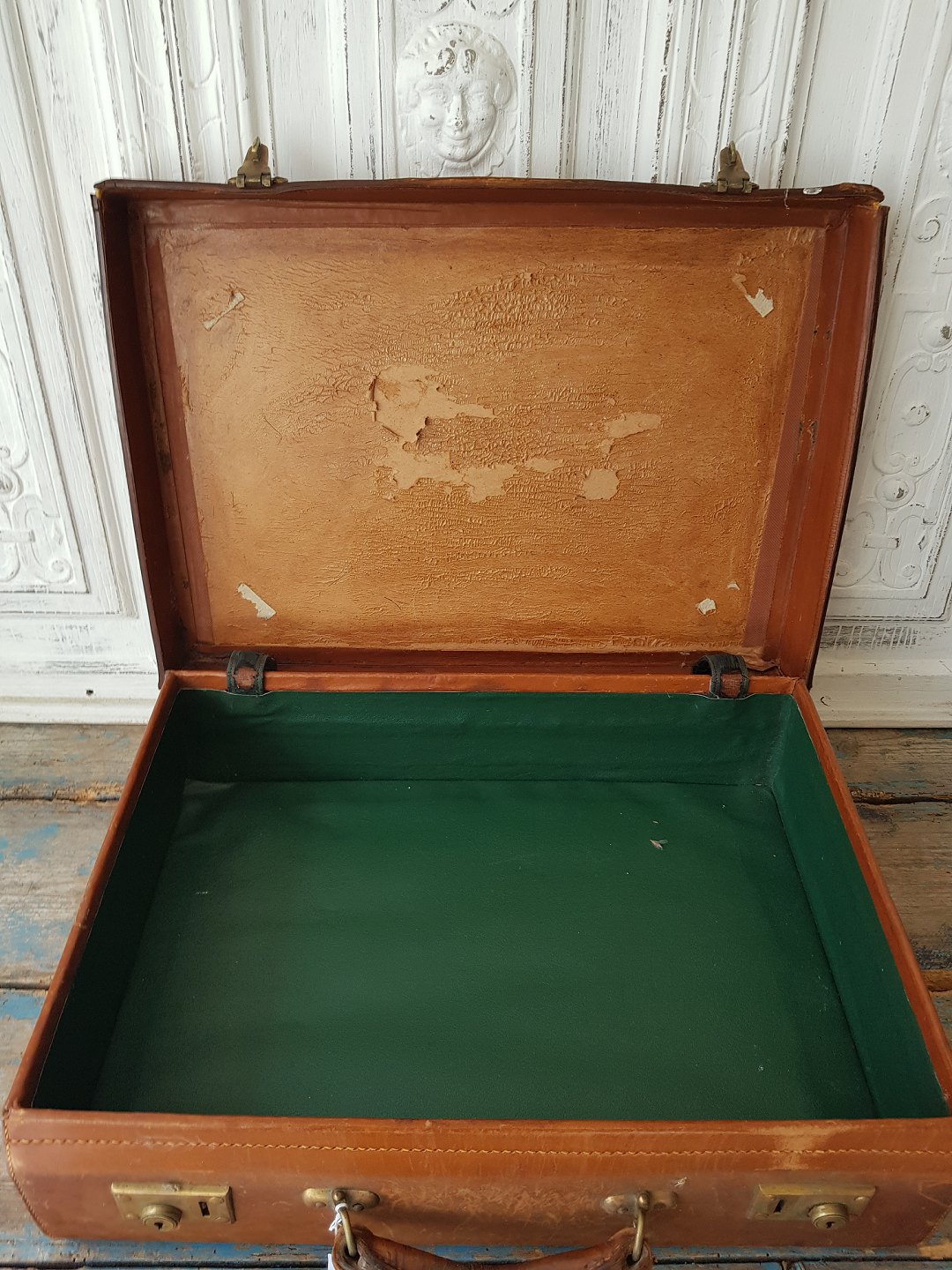 Vintage attachemappe i kernelæder med monogram