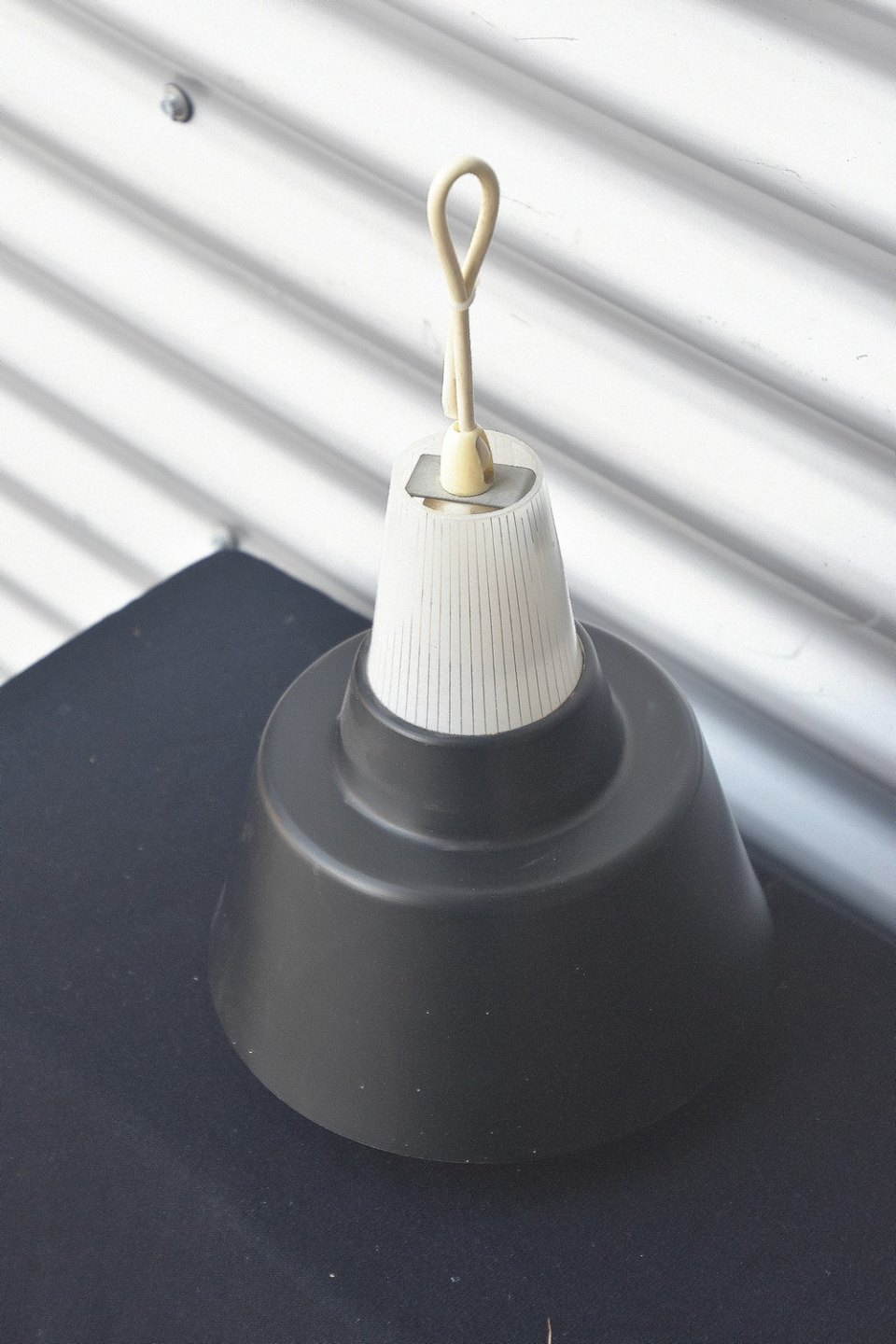 Sort/ hvid pendel, lavet i metal (sort) og opal glas
