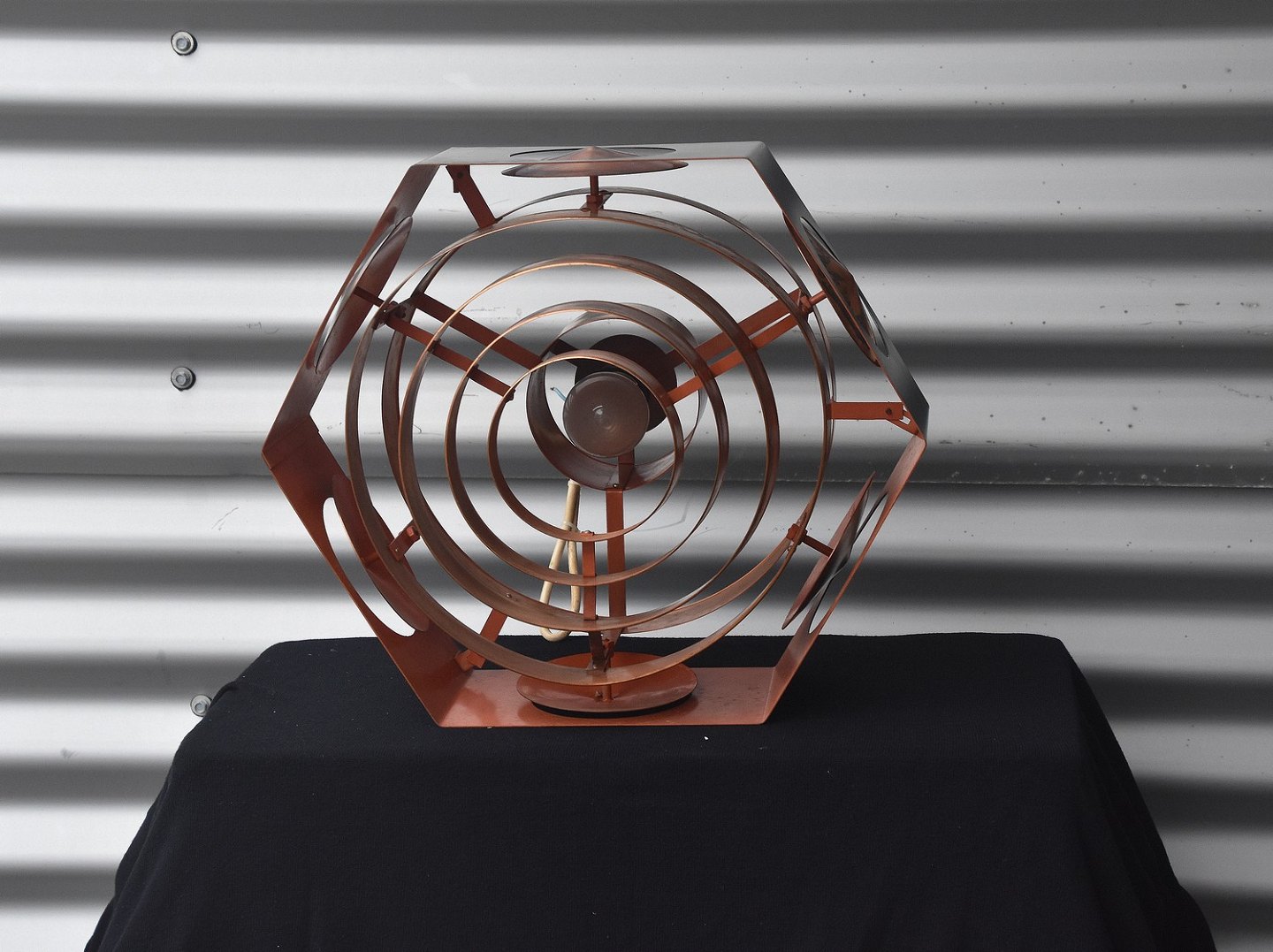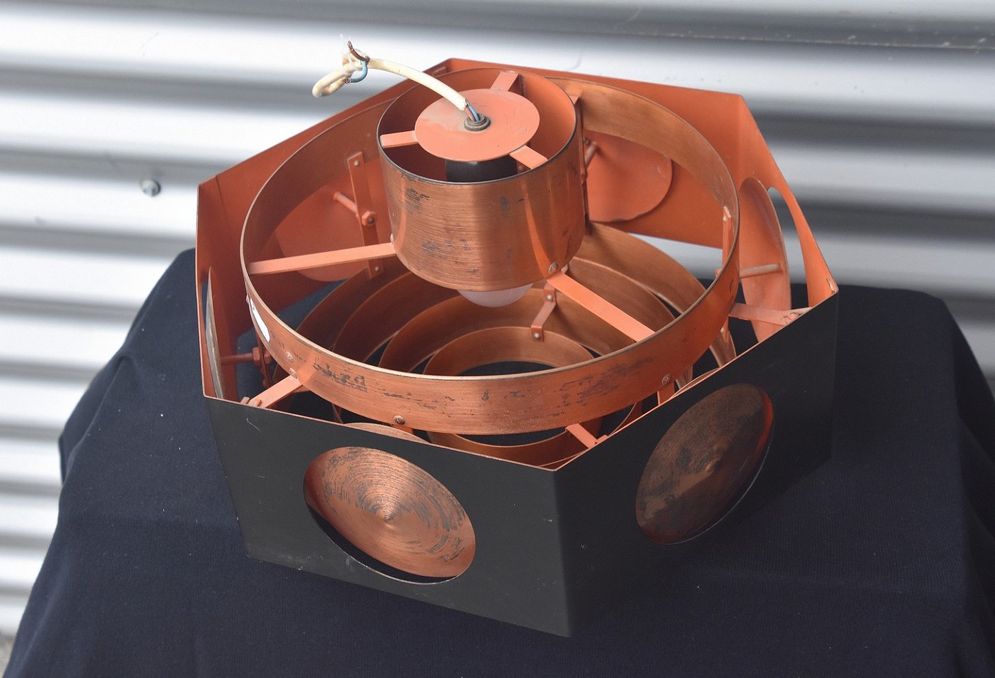 6- kantet kobberlampe med mat sort besætning. Lampen er også kobber indvendig