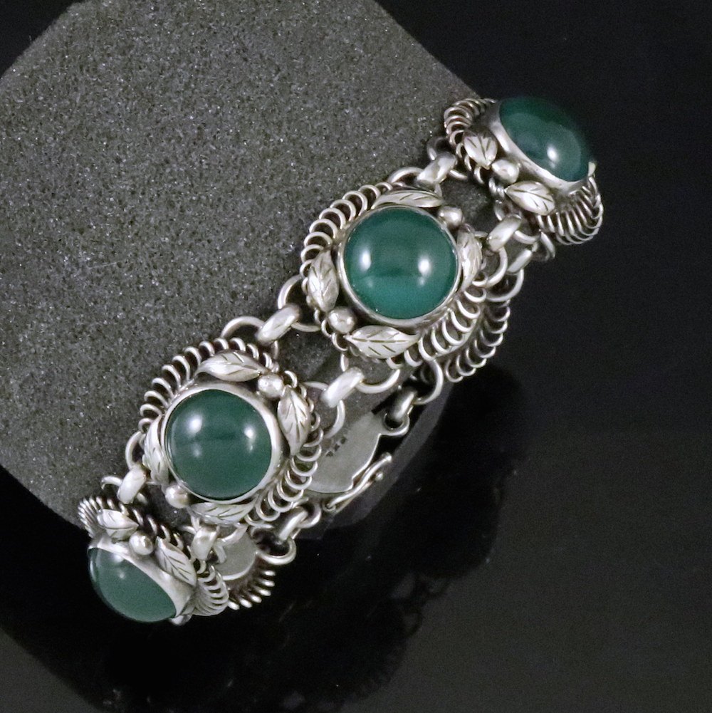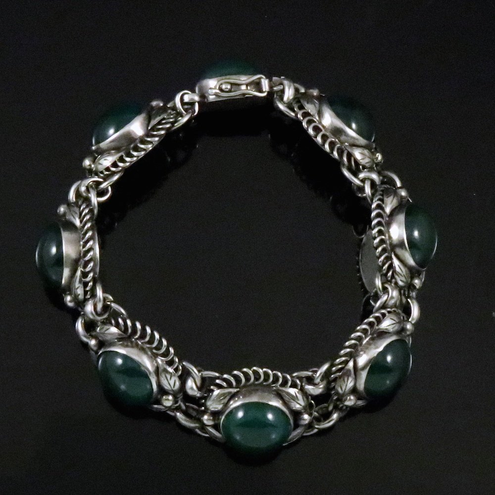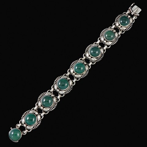 Leif Ulrich Daurup. Armbånd i Sterling sølv med grøn agat.