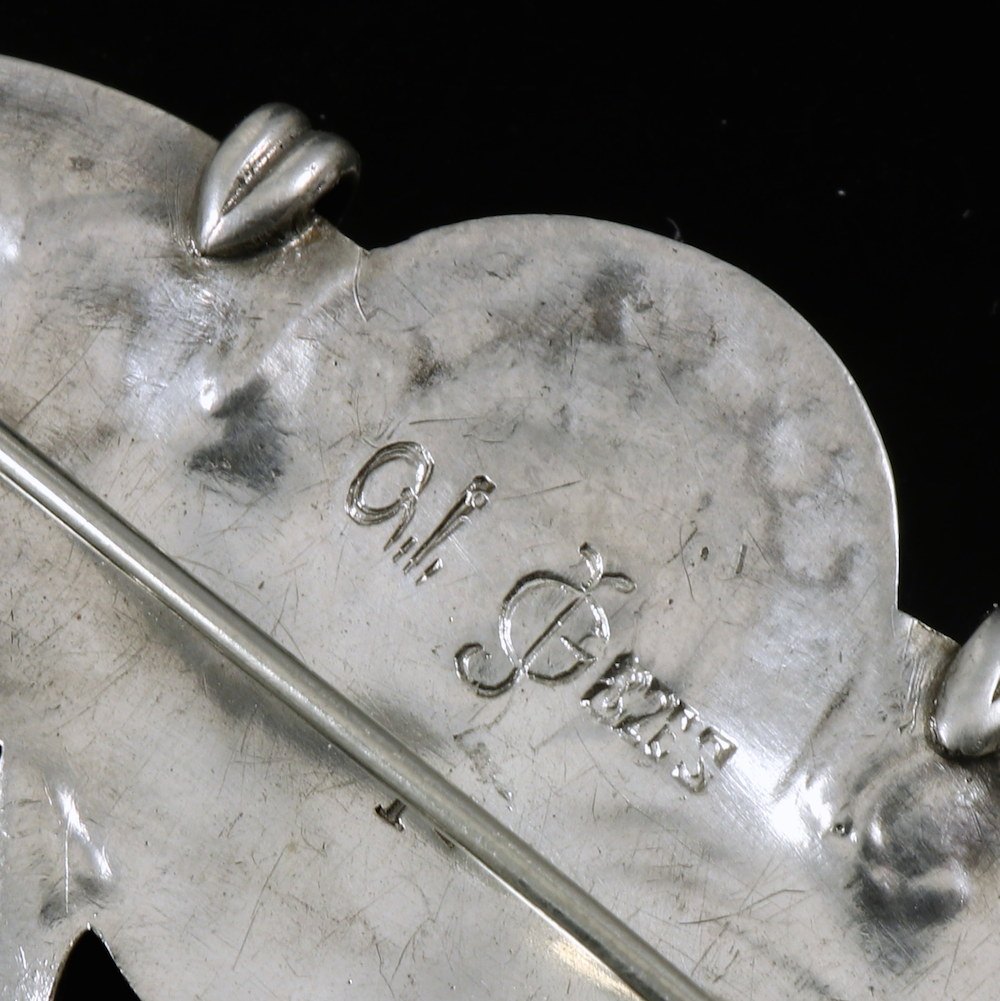 Georg Jensen Skønvirke Broche i 826S Sølv med Malakit. #14 - 1904-1908 stempler.
