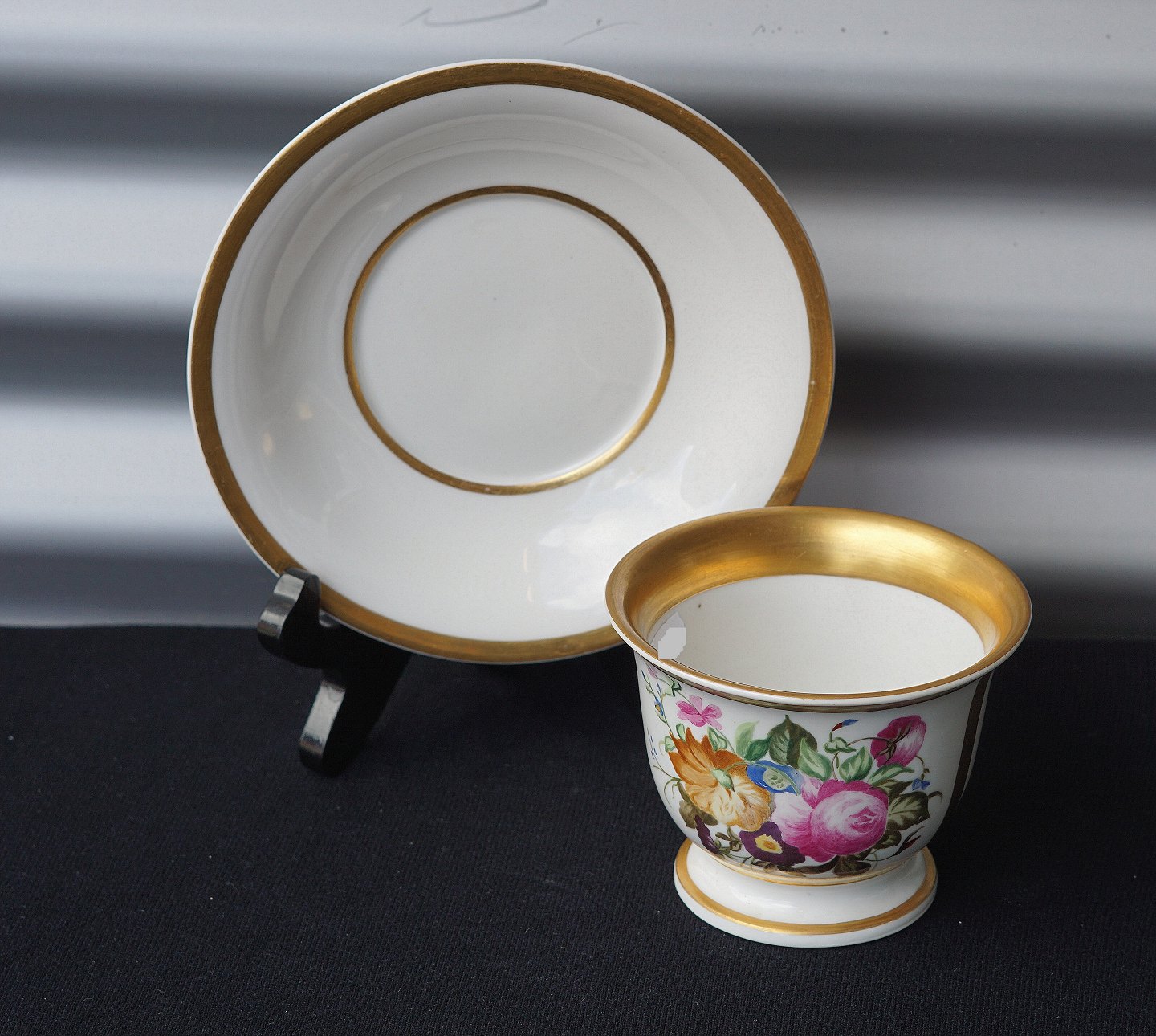 Stor kop dekoreret med blomster og årstal. Selve kop faconen er fra 1860-1880, men den er malet i 1920