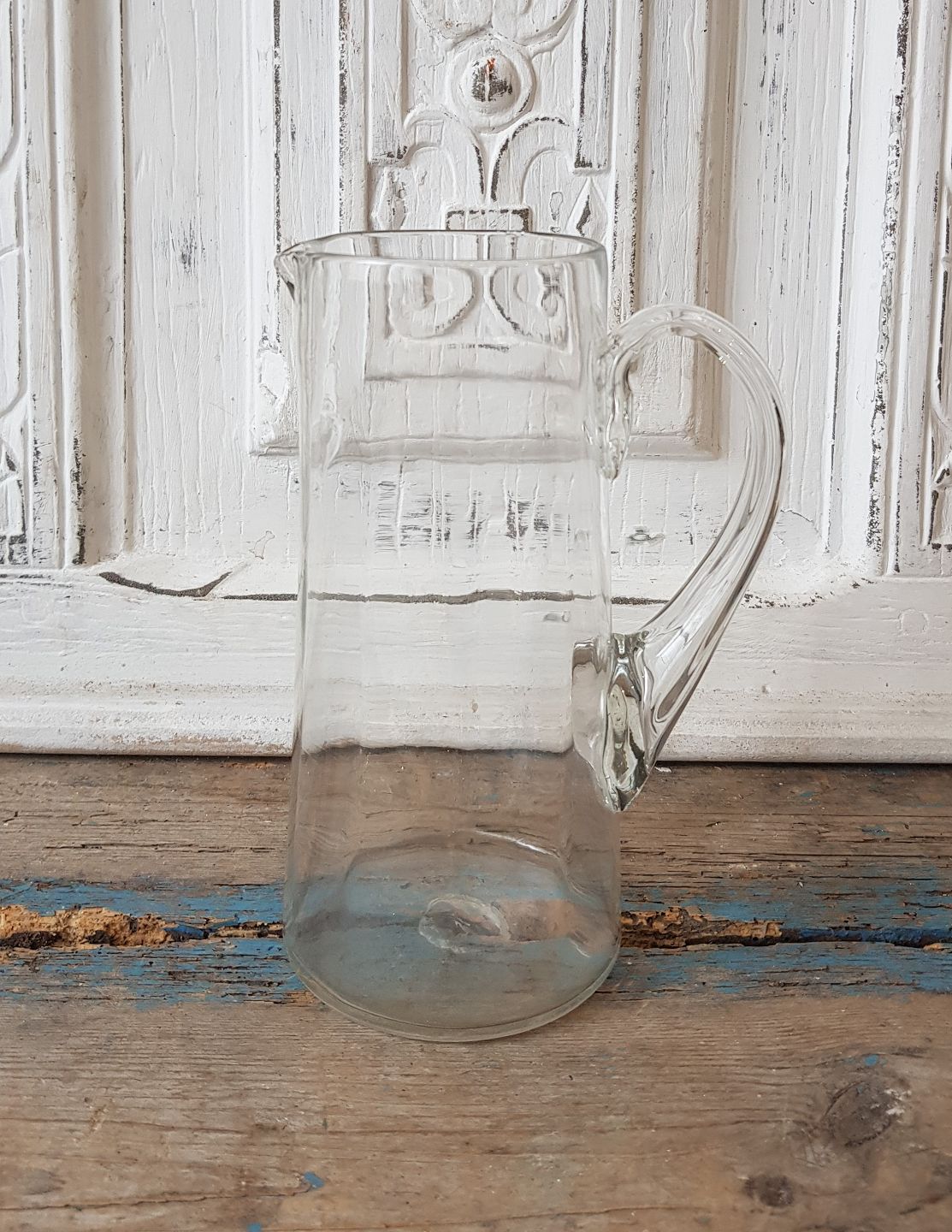 Old mouth-blown glass jug with twisted handle