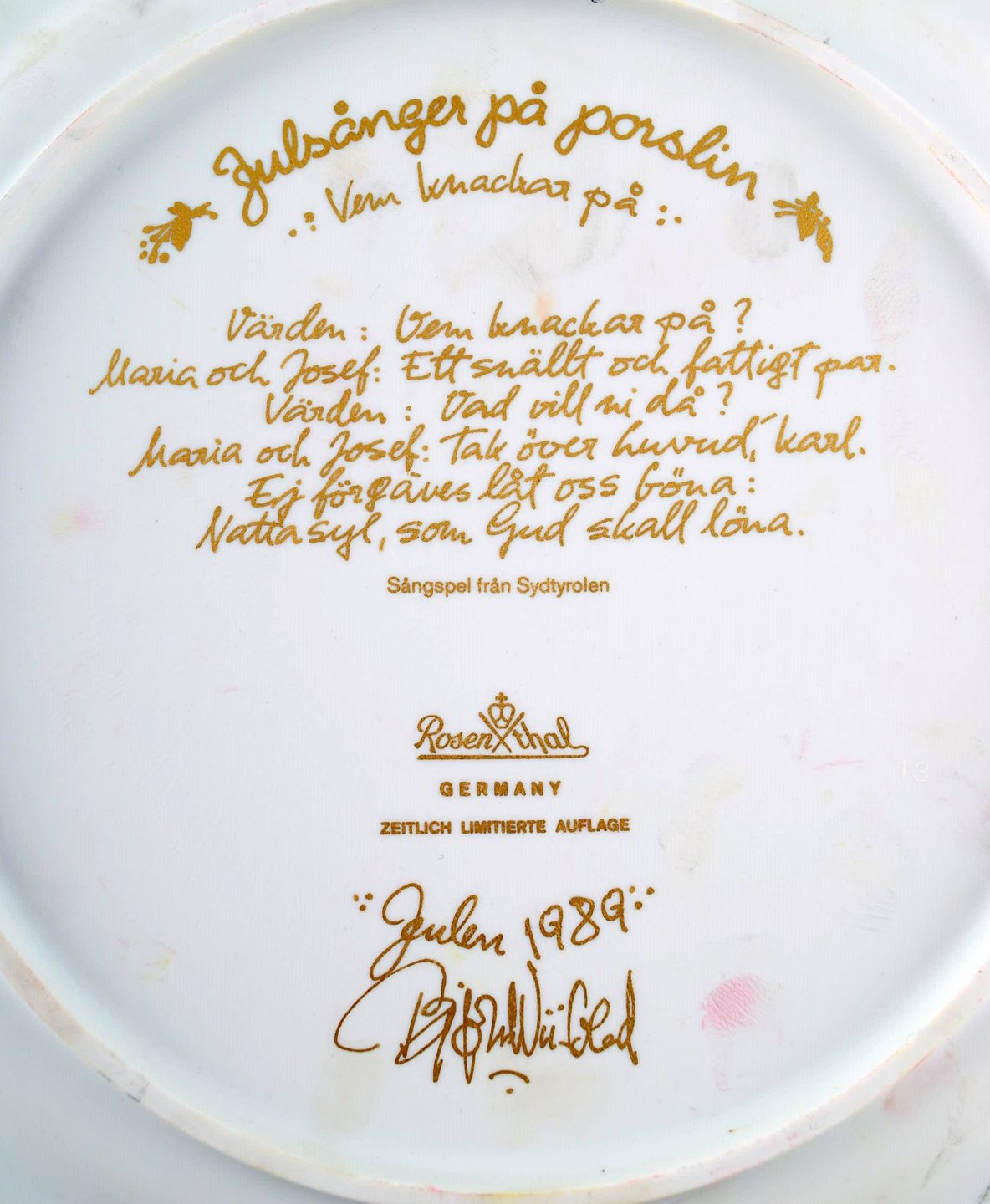 Bjørn Wiinblad for Rosenthal. Juleplatte i porcelæn fra 1989.