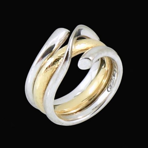 Georg Jensen. 18k Hvidguld og guld dobbelt ring. - Magic #1314 - 53mm.
