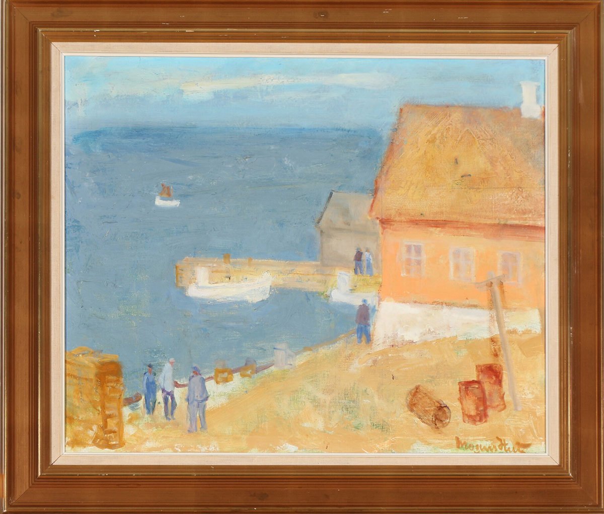 "Bornholm, kystparti med personer" Olie maleri på lærred.
