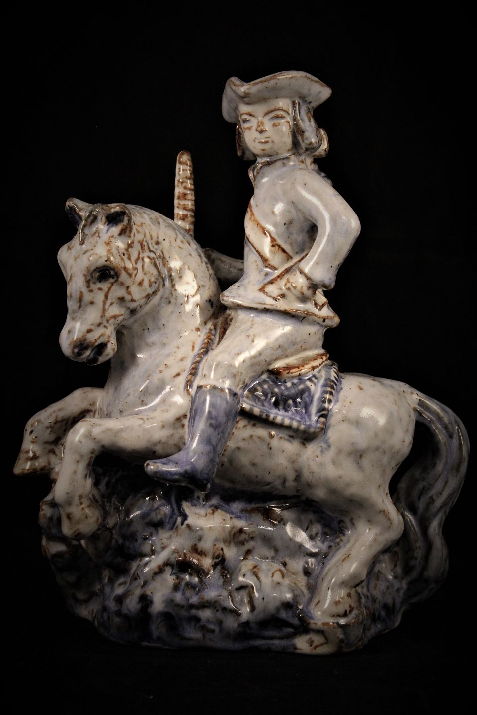 Glaseret keramik figur fra L.Hjorth - Danmark. af rytter.
