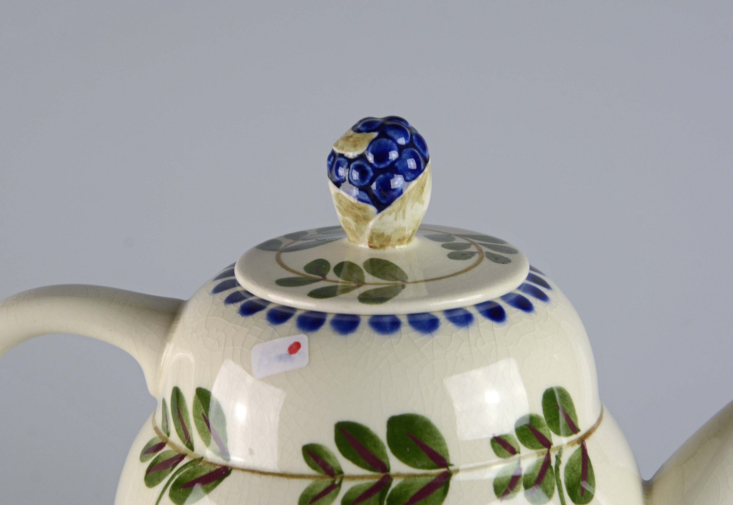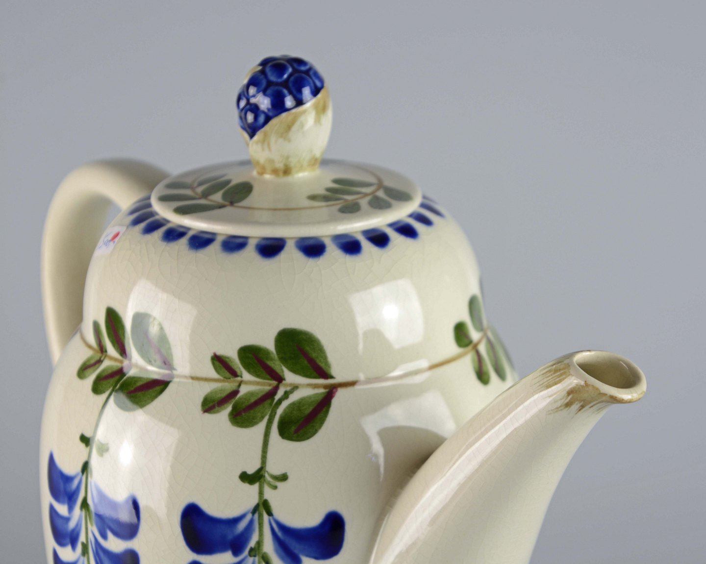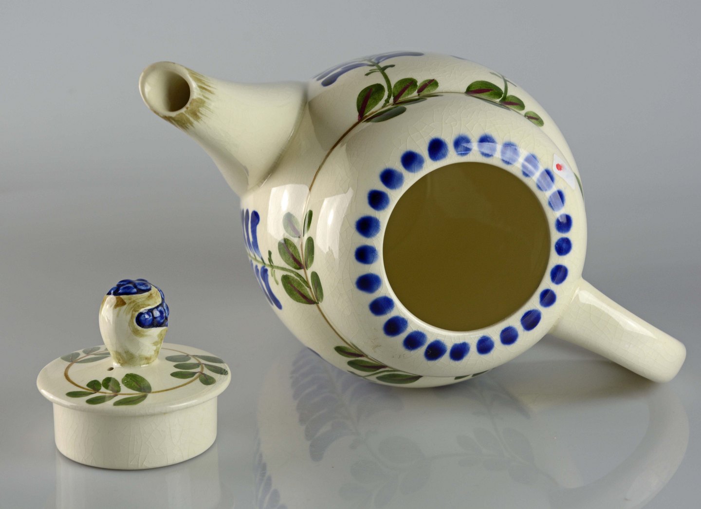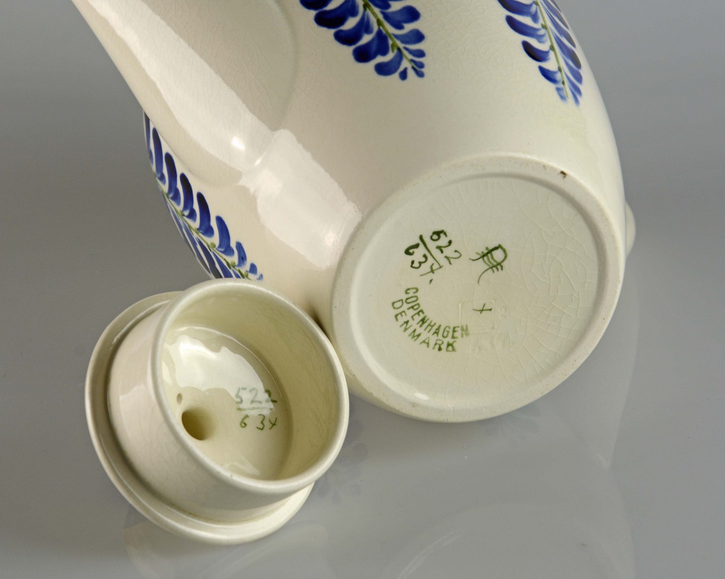 Blåregn kaffekande med låg i fajance fra Aluminia nr. 522/634