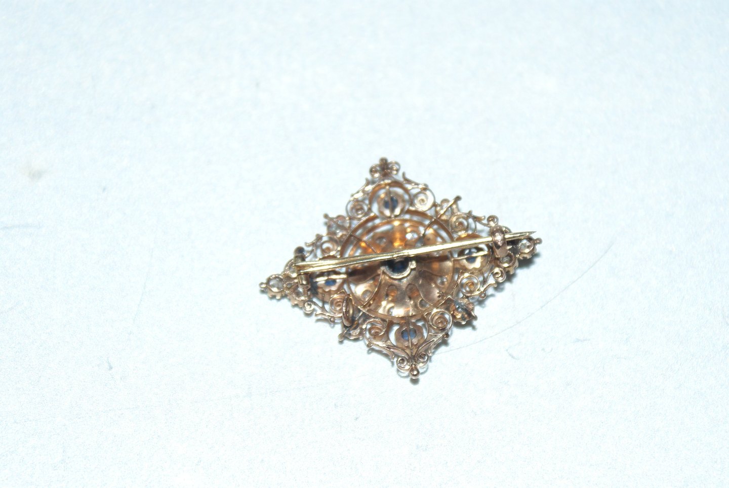 Broche med safir og brillianter i 14 karat Guld