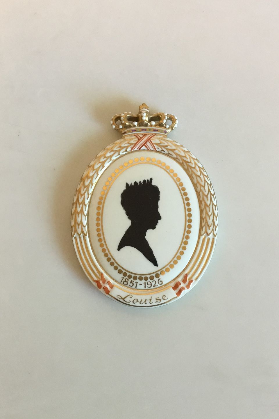 Royal Copenhagen Flora Danica Silhouette Plate Queen Louise of Sweden-Norway 1851 - 1926. Measures 10.2 cm x 7.6 cm (4 1/2 in. x 3 1/2 in.)