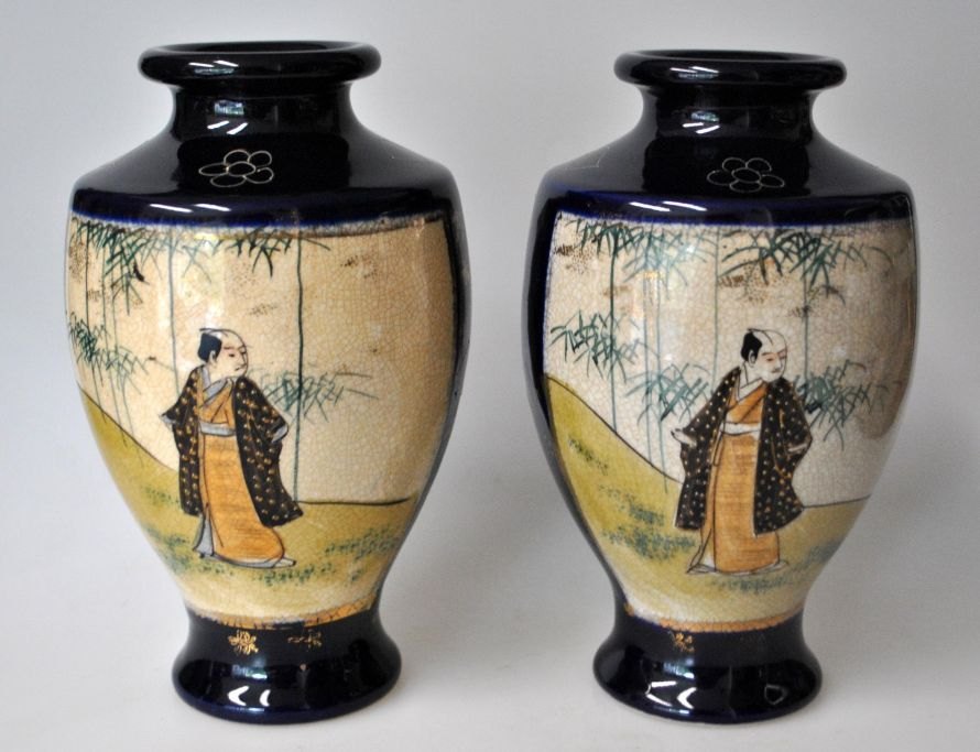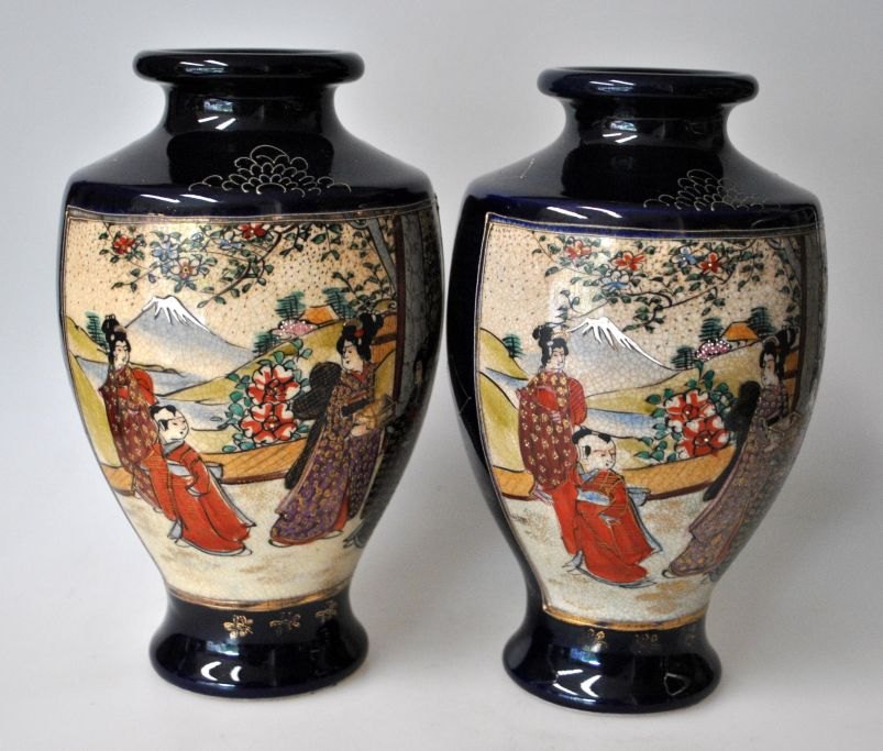 Pair of Japanese signed Satsuma vases, faience, approx. 1900