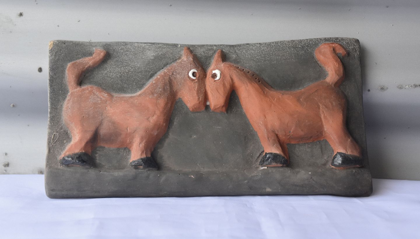 Henning Knudsen keramik, Keramik, keramik relief, relief, keramik heste, lertøj,