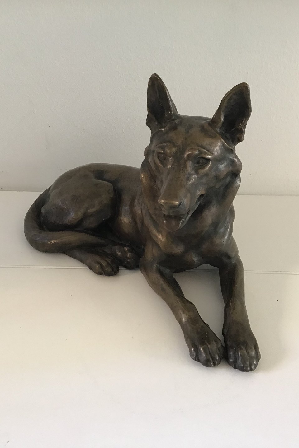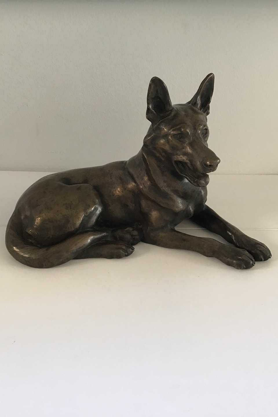 Dansk Kunsthandel Lauritz Jensen Liggende Schæferhund Bronze