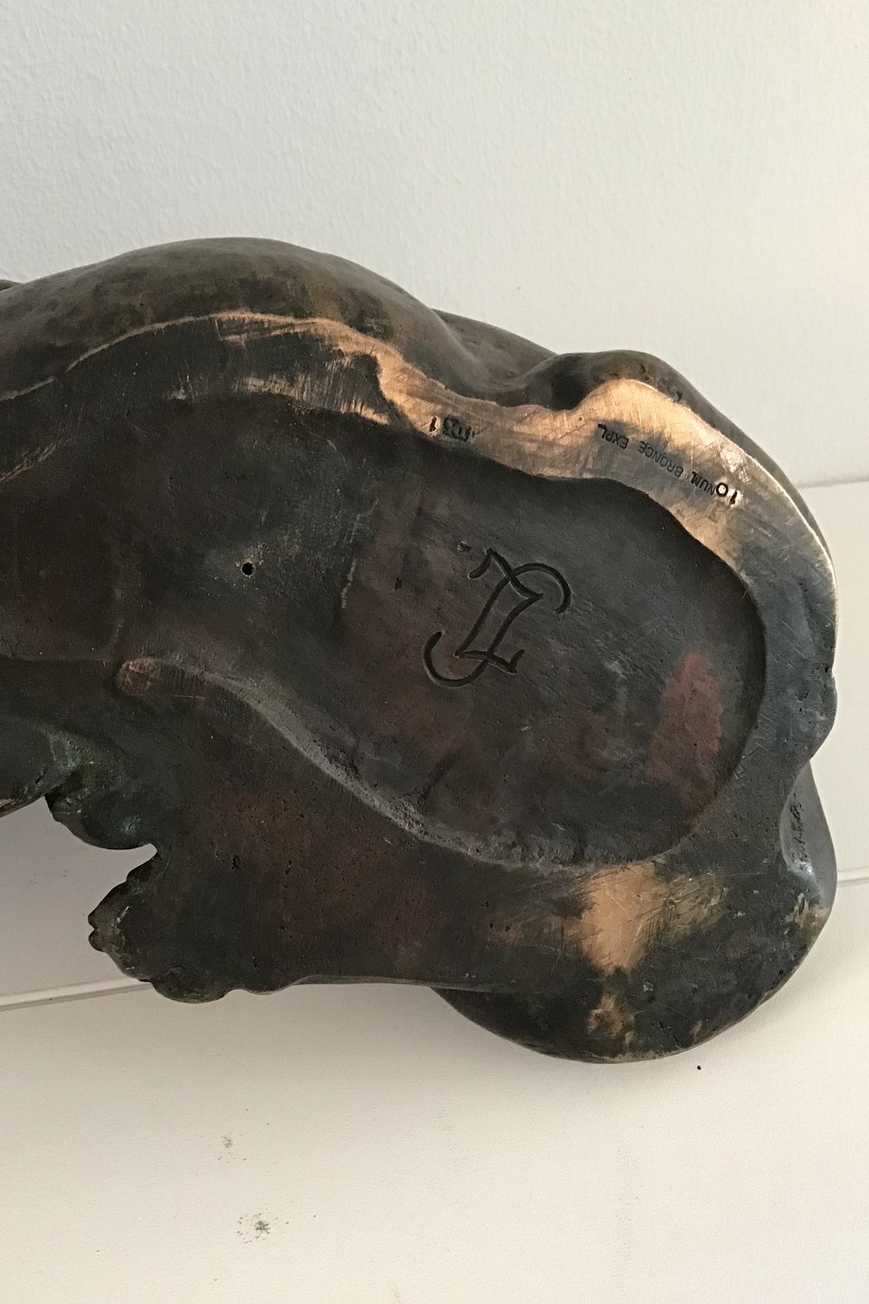 Dansk Kunsthandel Lauritz Jensen Liggende Schæferhund Bronze Model No 1, nummereret eksemplar 10 Måler H 18.5 cm x L 31 cm