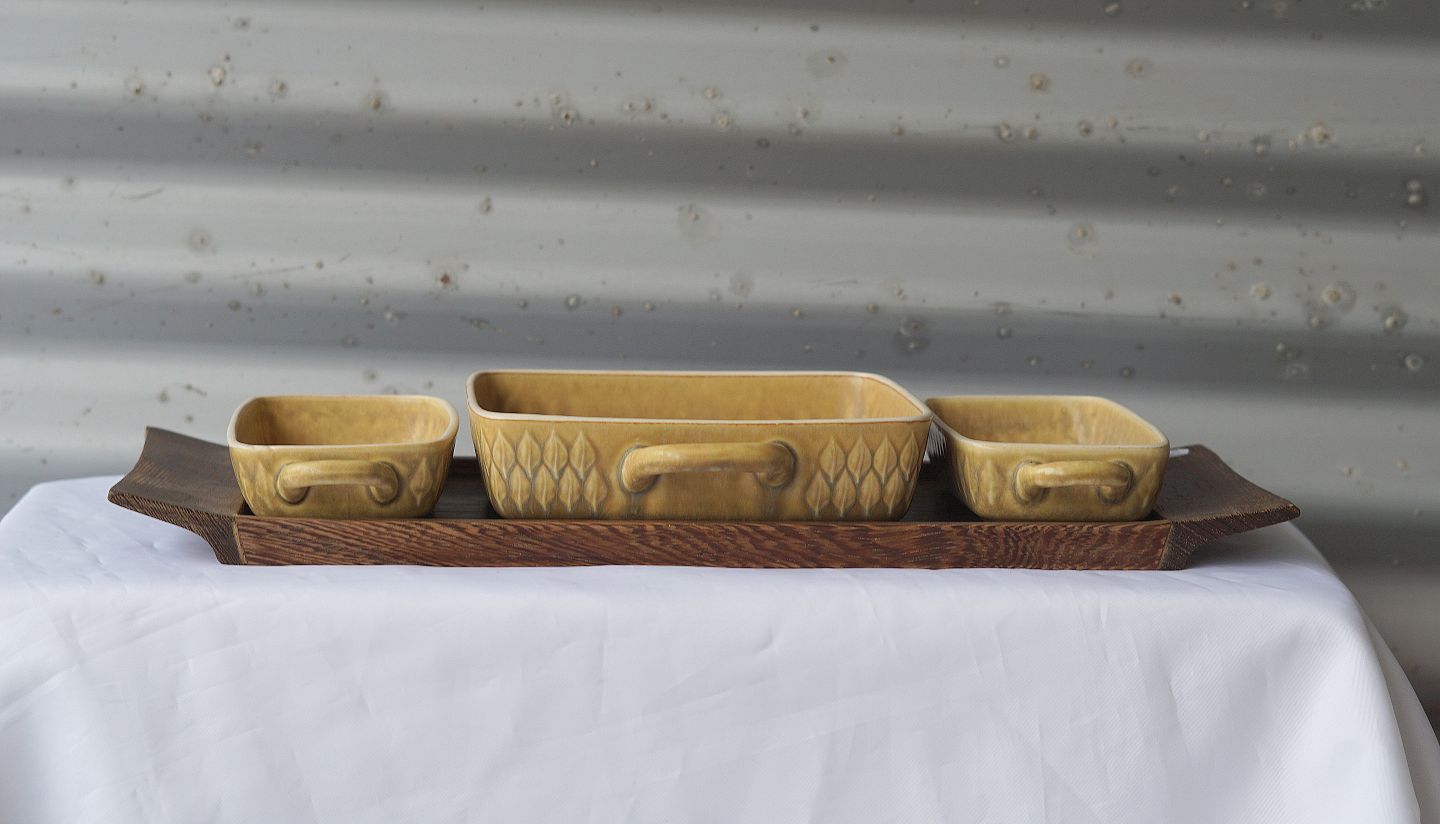 Cabaretfad, med skåle fra Relief, fejl i træ i den ene ende af bakken, kan laves.