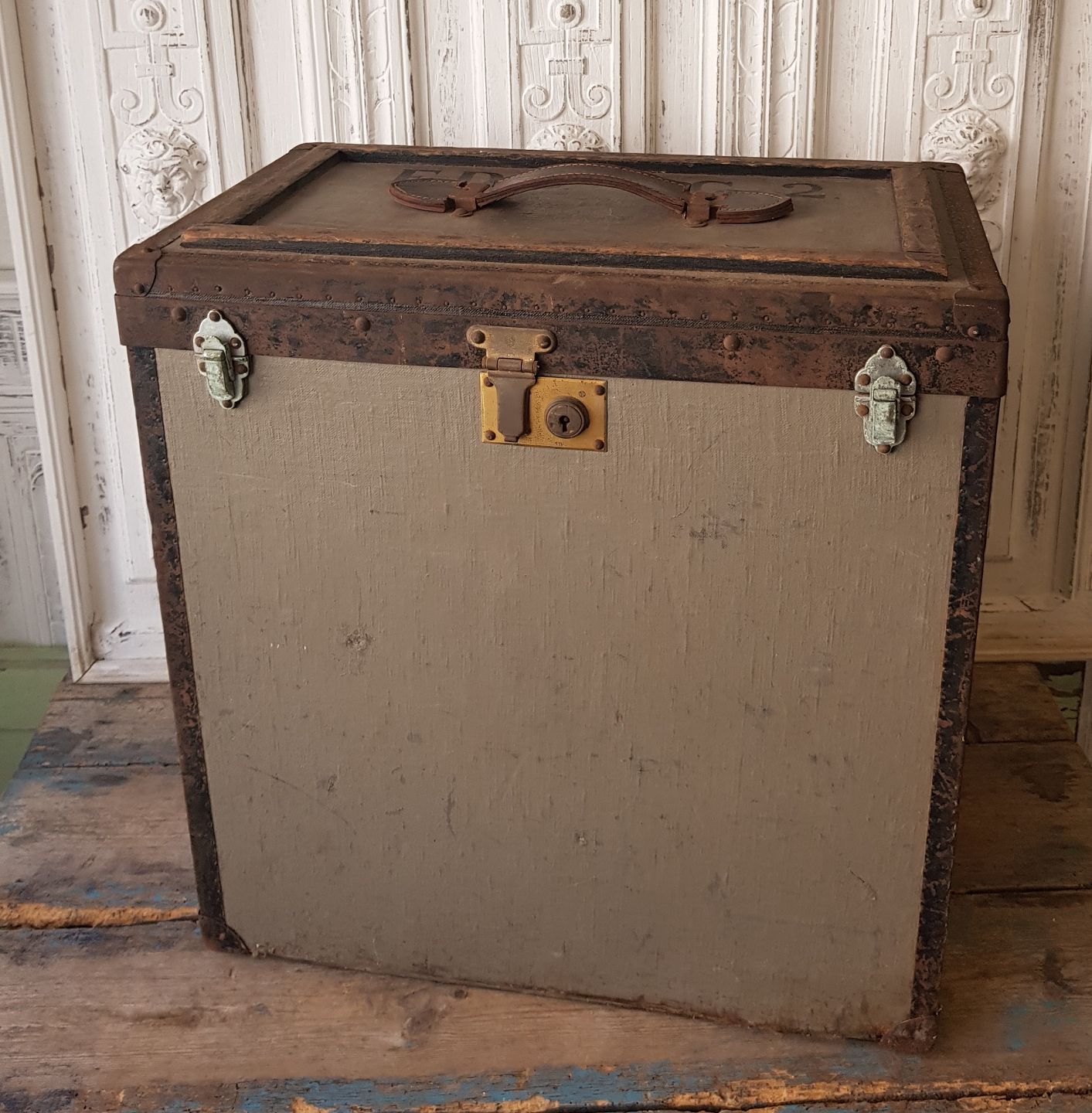 Gammel rejsekuffert/repræsentant kuffert med metalbeslag fra F.D.B.