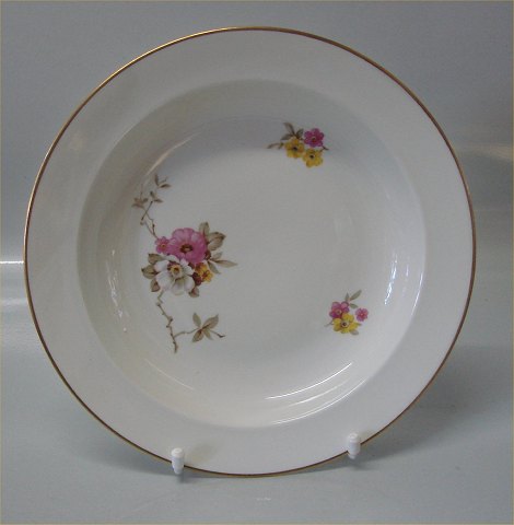 022 Stor dyb tallerken 24 cm (322) Absalon B&G Bing & Grøndahl B&G Absalon: Creme porcelæn, rød og hvid frugtblomst og guldkant, form 635
