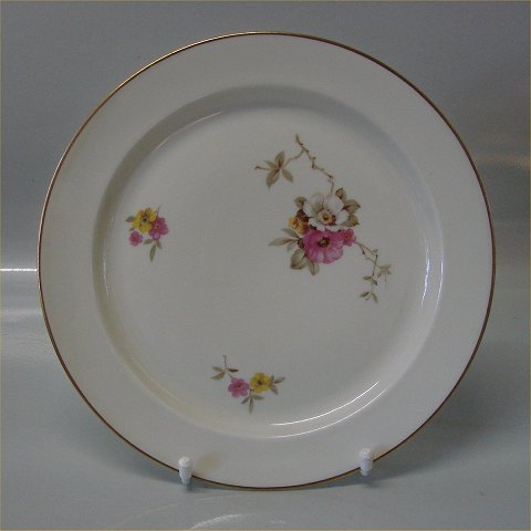 025 Middagstallerken 24 cm (325) Absalon B&G Bing & Grøndahl B&G Absalon: Creme porcelæn, rød og hvid frugtblomst og guldkant, form 635