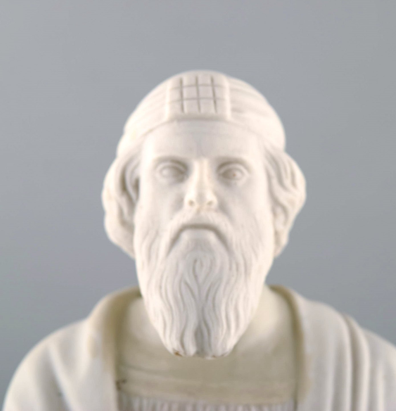 Antik og sjælden Royal Copenhagen skulptur i biscuit. Skulptur af farisæer efter Thorvaldsen. Ca. 1870.