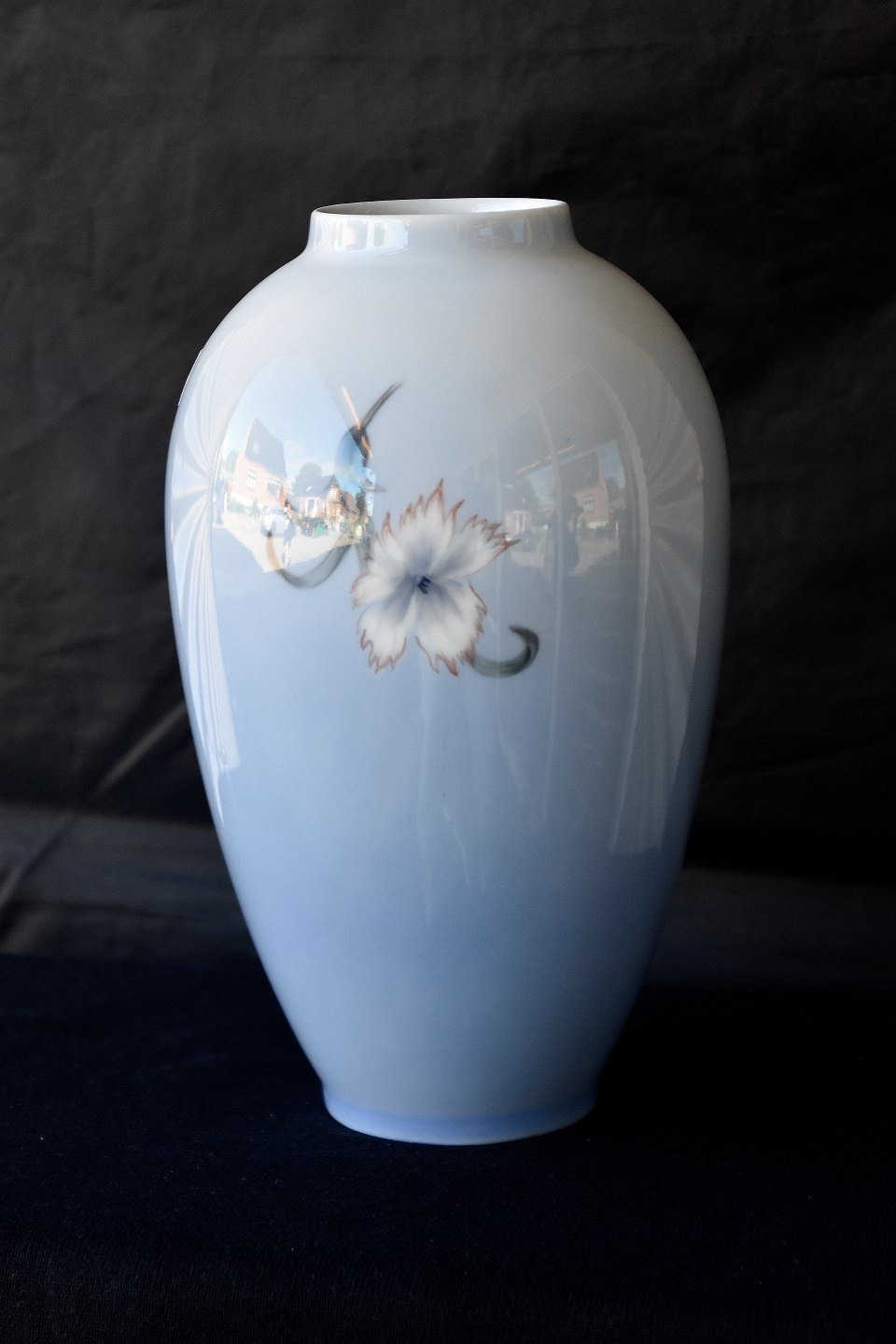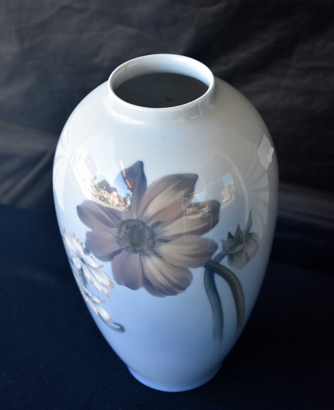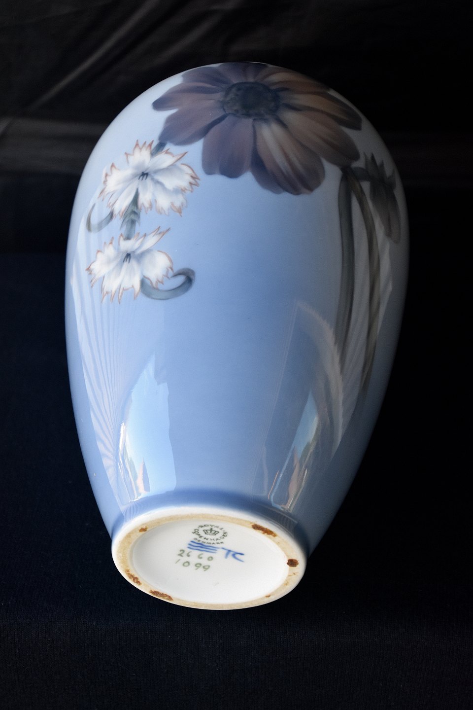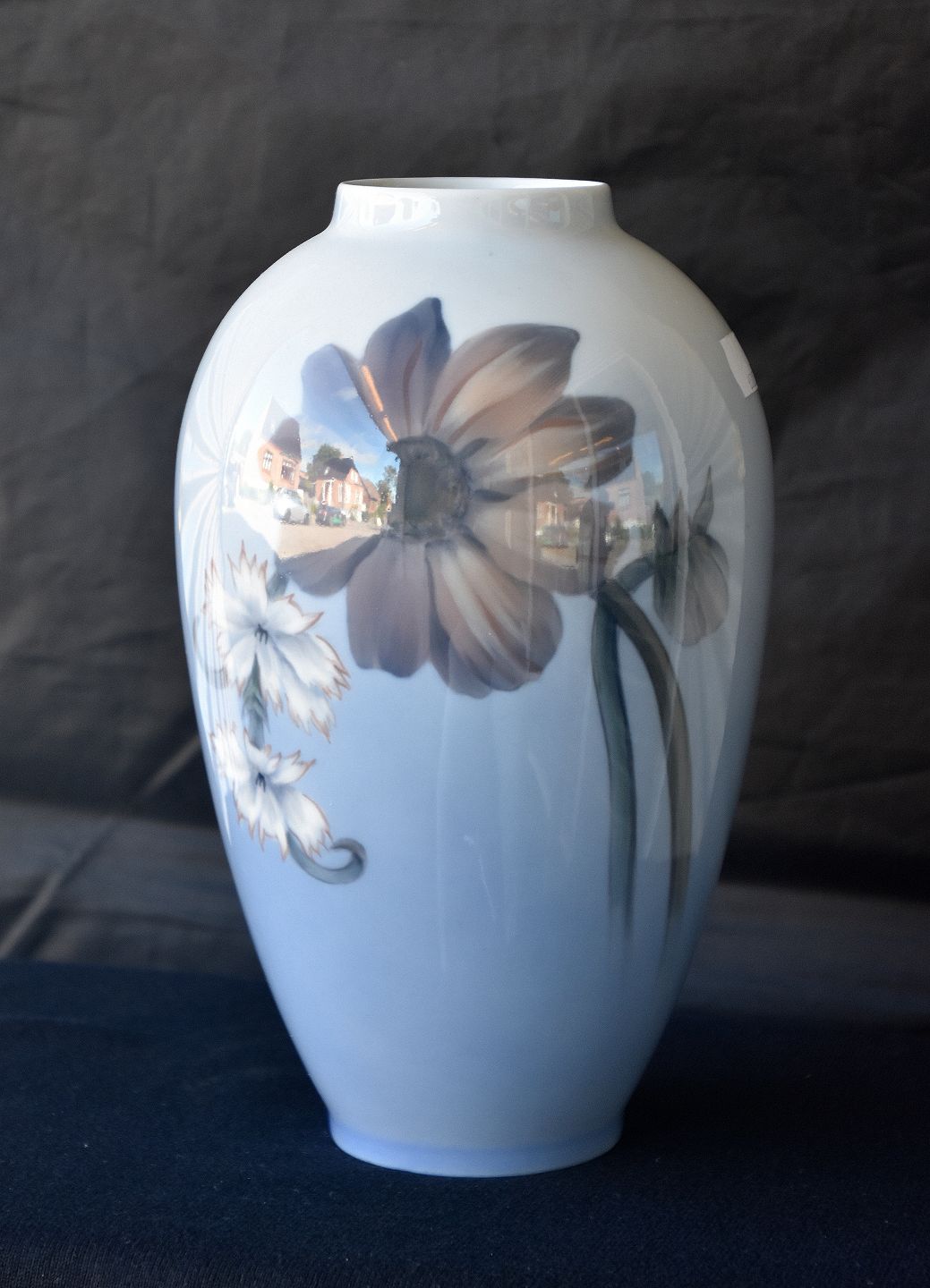 Royal Copenhagen vase nr. 2660/1099, dekoreret med brunrøde og hvide blomster