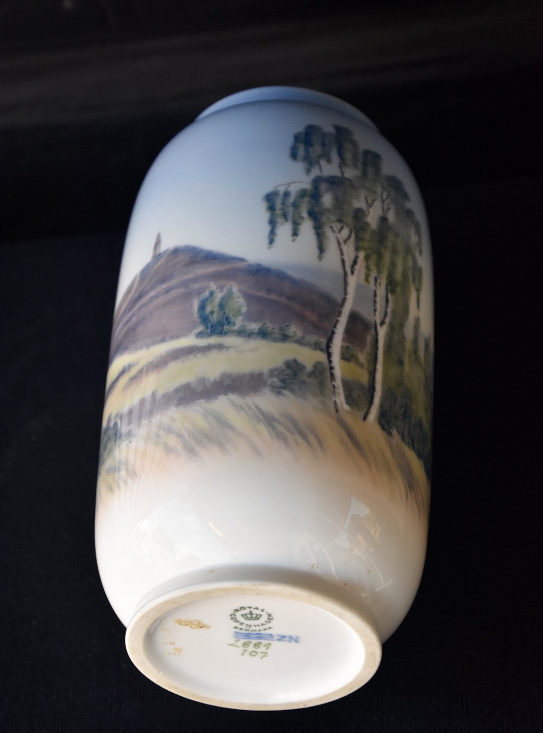 Royal Copenhagen vase, 2889/107, dekoration forestiller Himmelbjerget og 1 birketræ