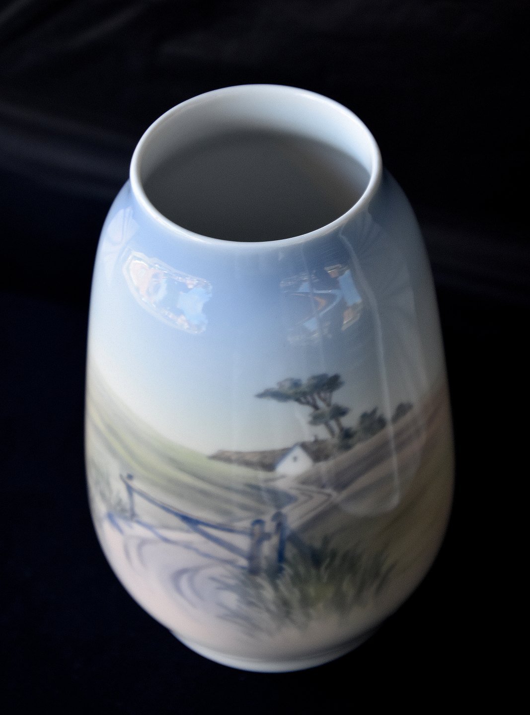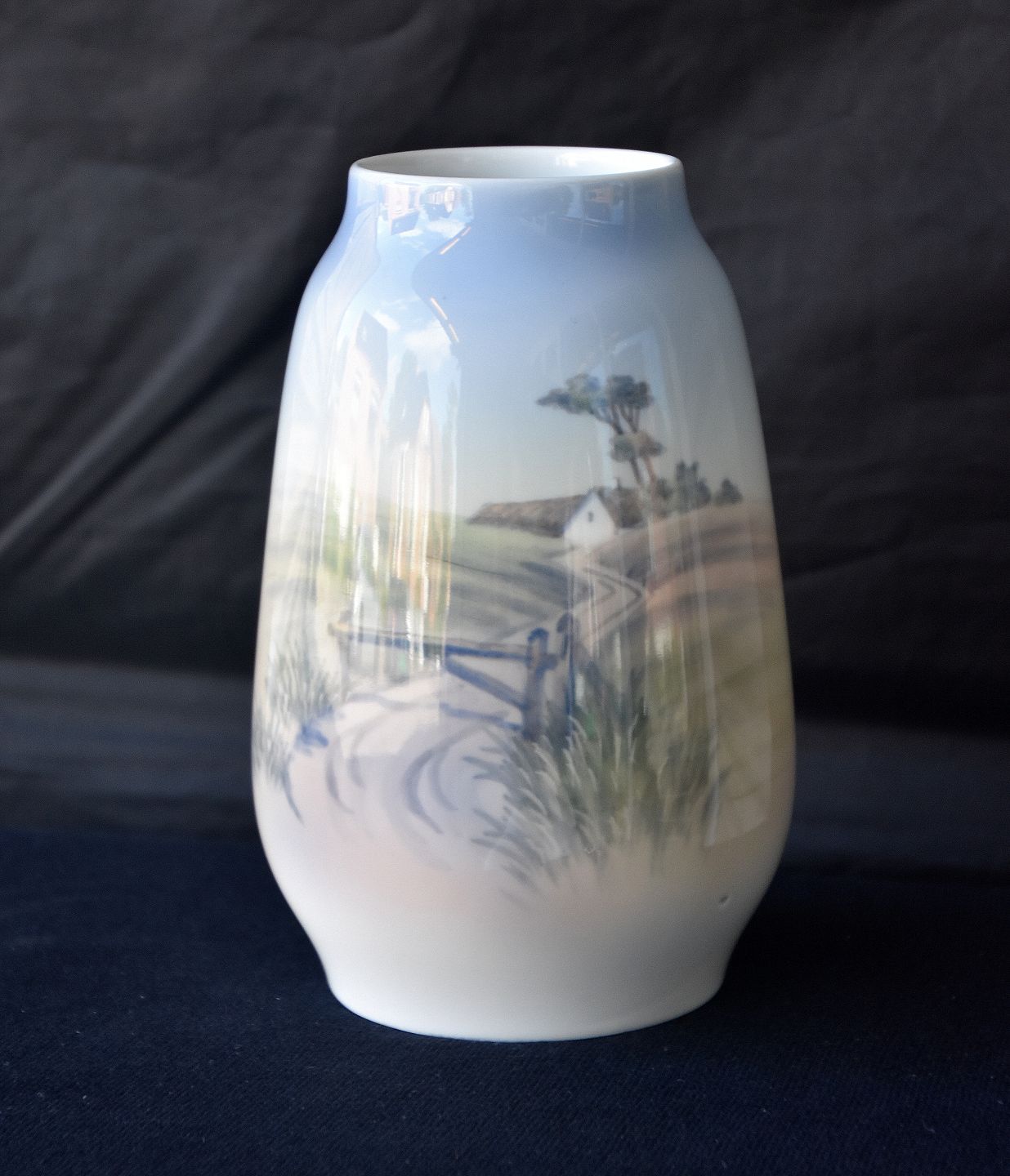 Royal Copenhagen, vase nr. 2776/1224. Dekoration er vej til bondegård