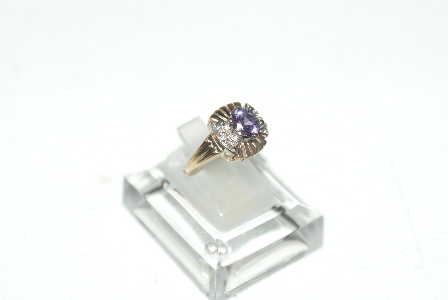 Women's Gold ring with diamonds and amethyst 14 Karat