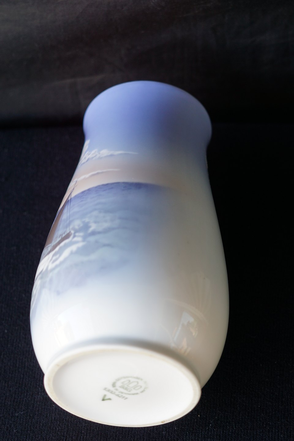 Bing & Grøndahl, B&G, vase, porcelæn, fiskekutter, fisk, kutter, åbent hav, hav, bølgeskvulp, bølge, fiskebåde
