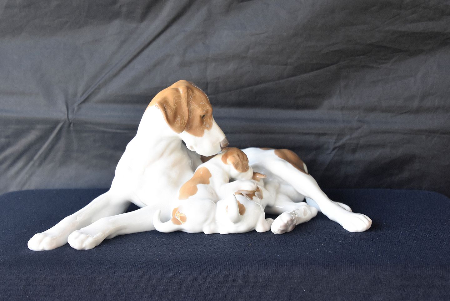 Figur i porcelæn med motiv af Pointer med hvalpe. Nr. 2111