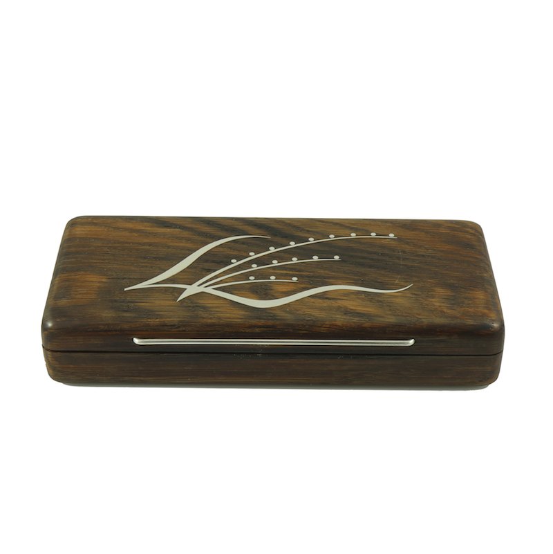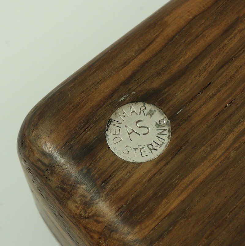 Æske i moseeg med sterling sølv intarsia. 1960erne