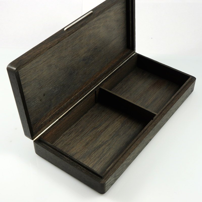 Æske i moseeg med sterling sølv intarsia. 1960erne