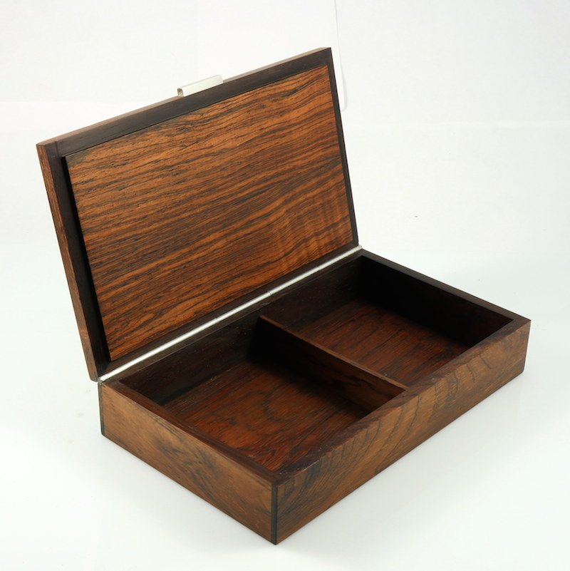 Hans Hansen. Æske i Rio-Palisander med indlagt sterling sølv. 1960erne.