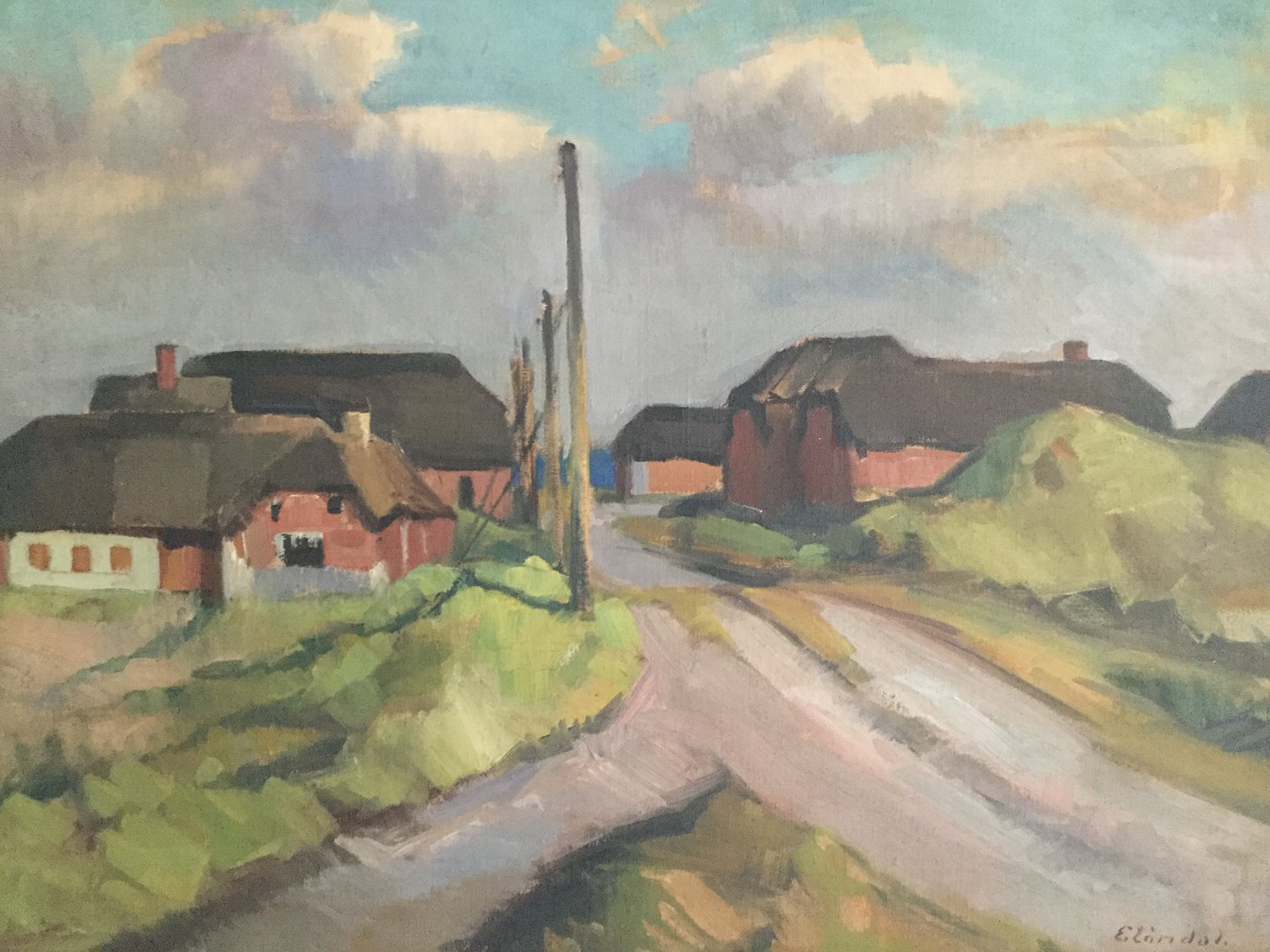 Maleri af Eiler Løndal - Kystlandskab med gård.