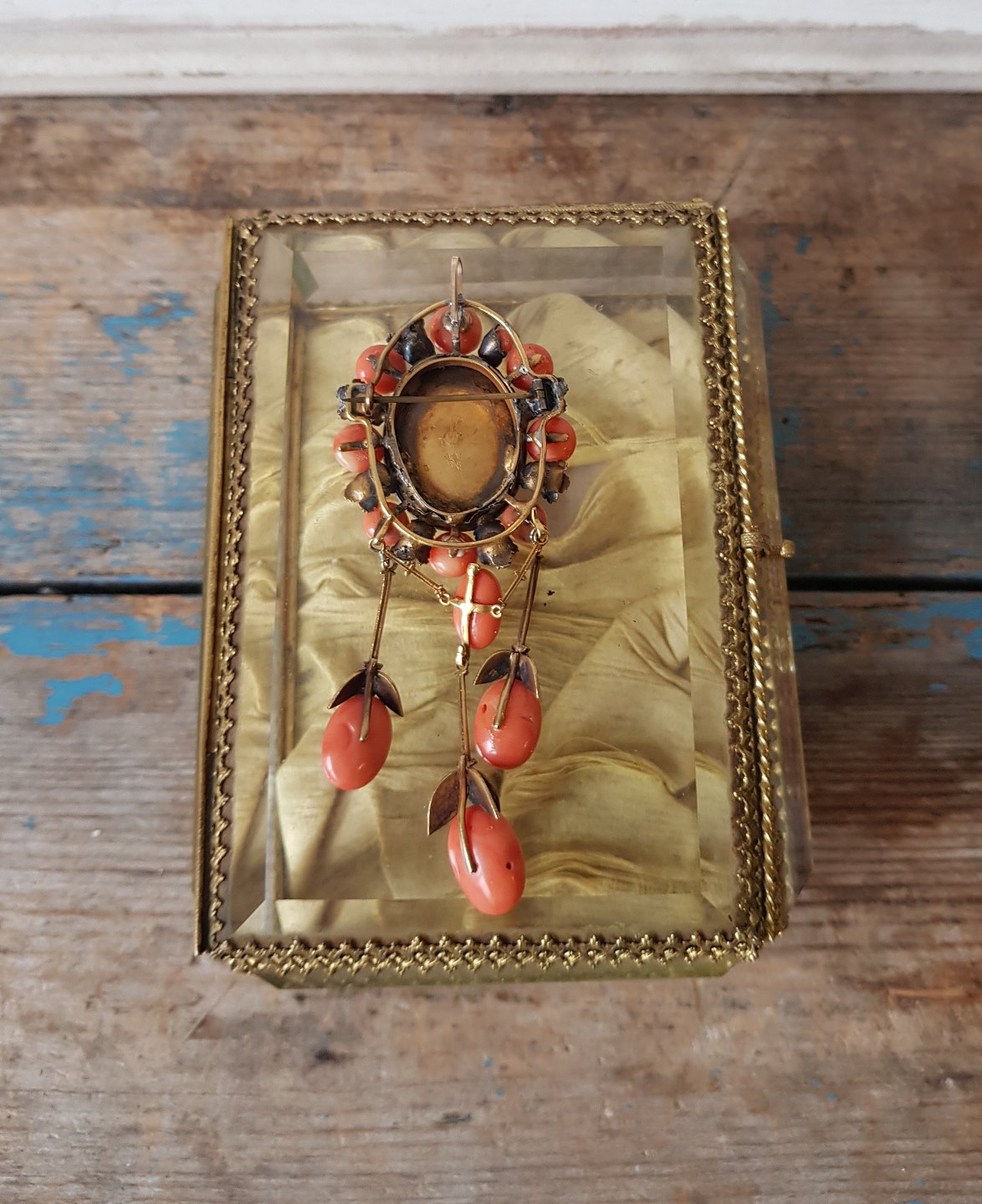 Victoriansk 8 kt guld broche med koral ca. 1860.