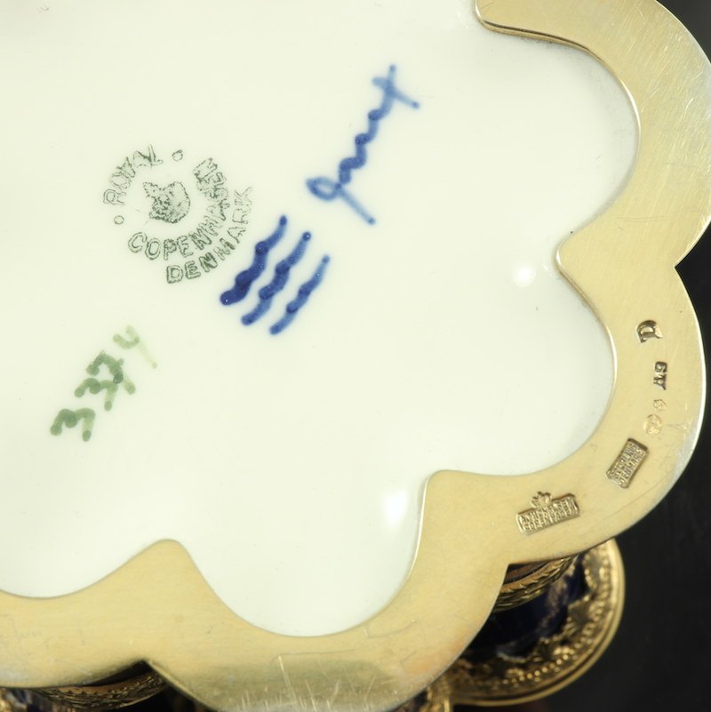 Royal Copenhagen / A. Michelsen. Margrethebæger i porcelæn med forgyldt sølvmontering. 1951.