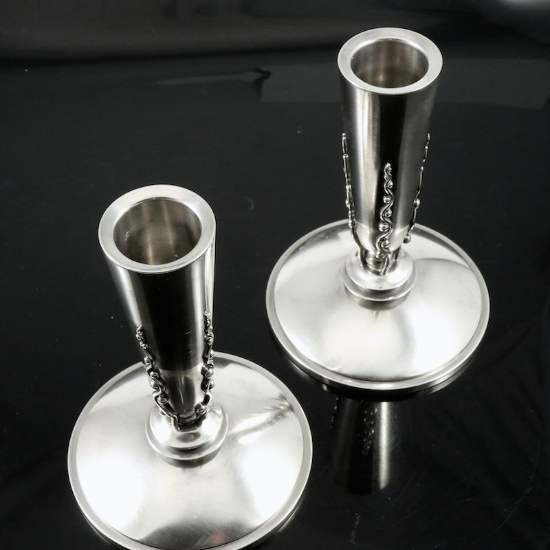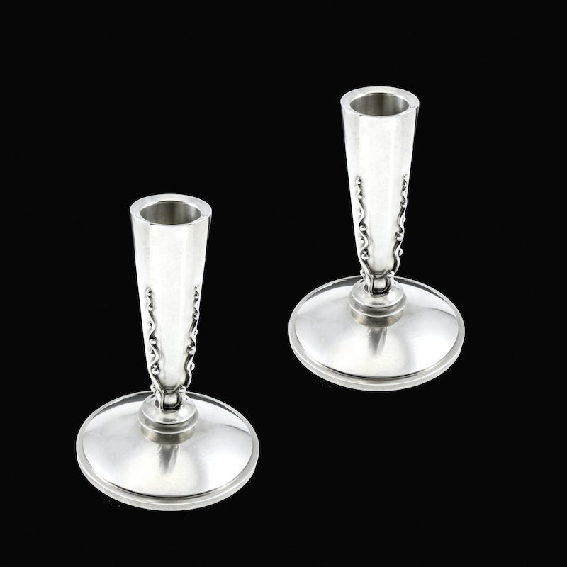 Evald Nielsen 1879-1958. A pair of Art deco Sterling Silver Candlesticks.