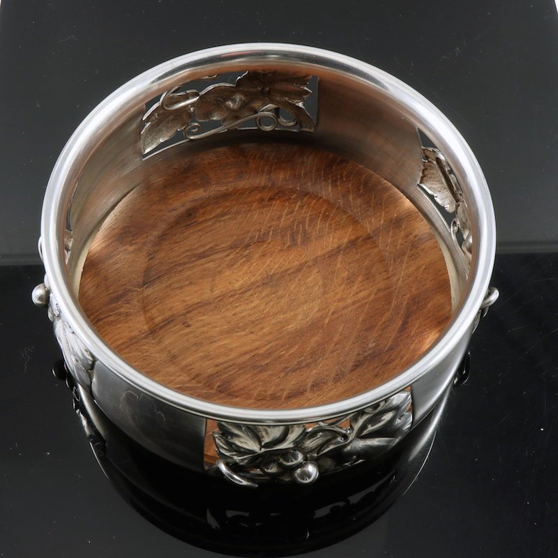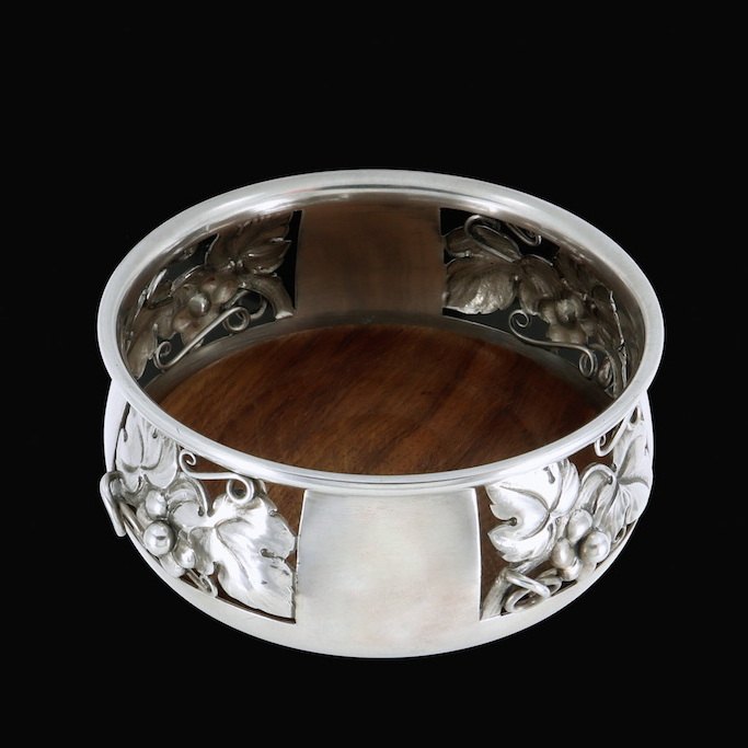 Evald Nielsen 1879-1958. Flaskebakke i Sterllng sølv med druemotiv.