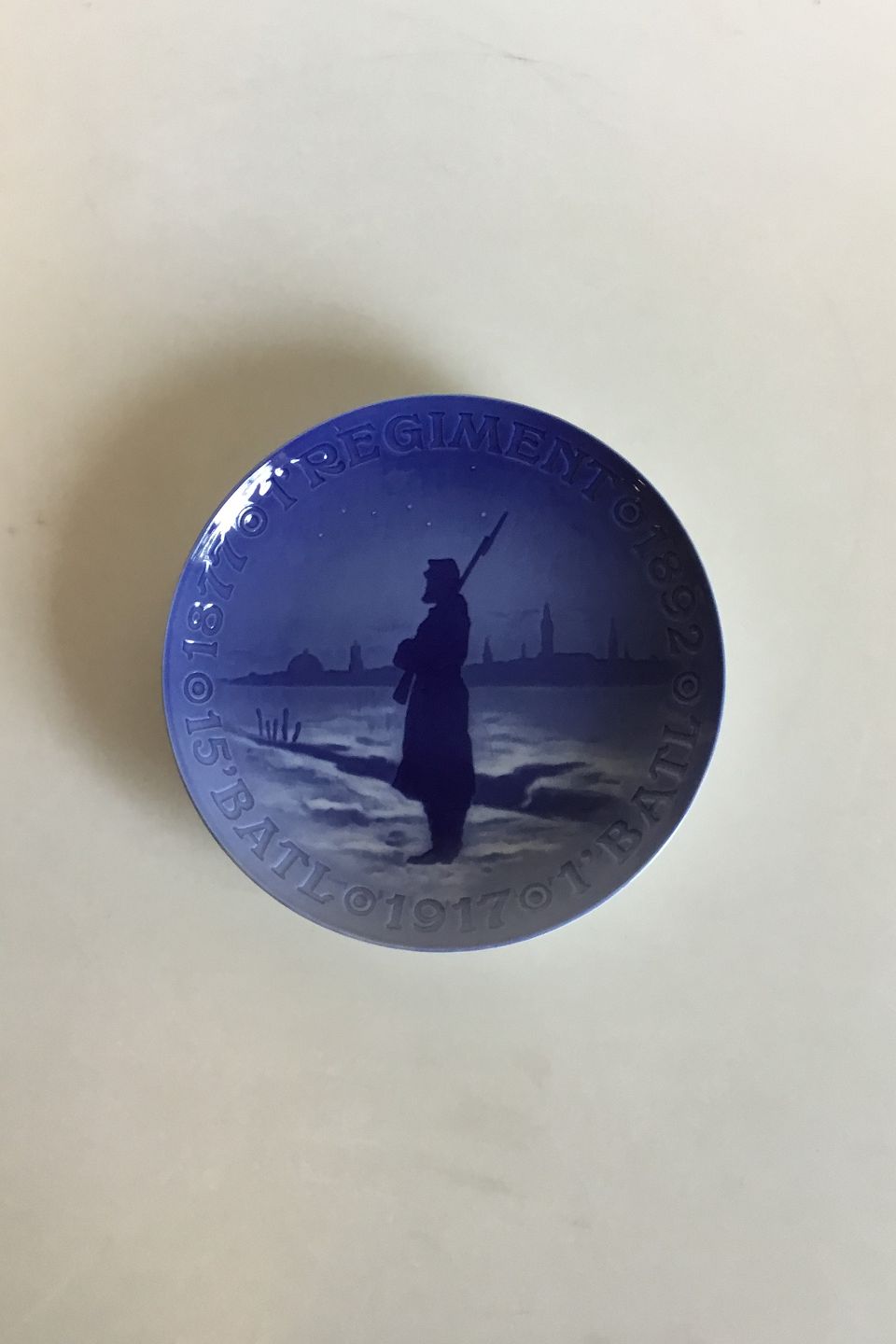 Bing & Grøndahl Mindeplatte fra 1892 BG-CM48. Måler 18 cm. 25 års jubilæum for 1. regiments 15 battalion