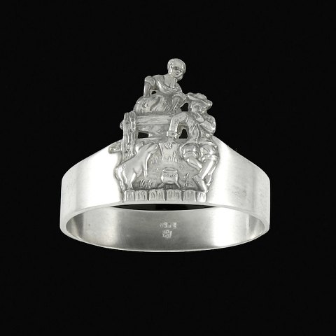 Servietring i sølv med motiv fra H.C. Andersens eventyr.